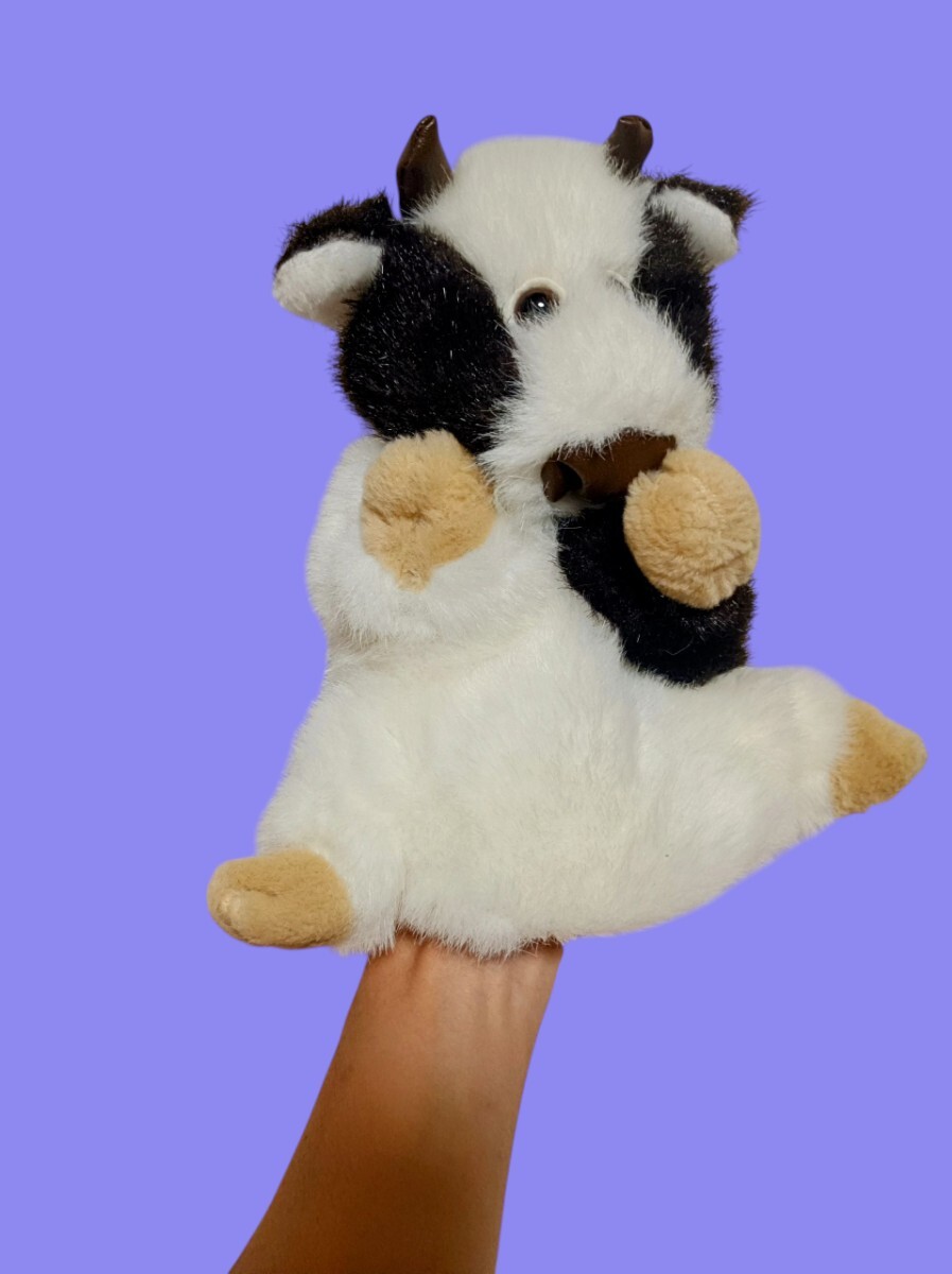 手を中に入れて牛さんを動かせます