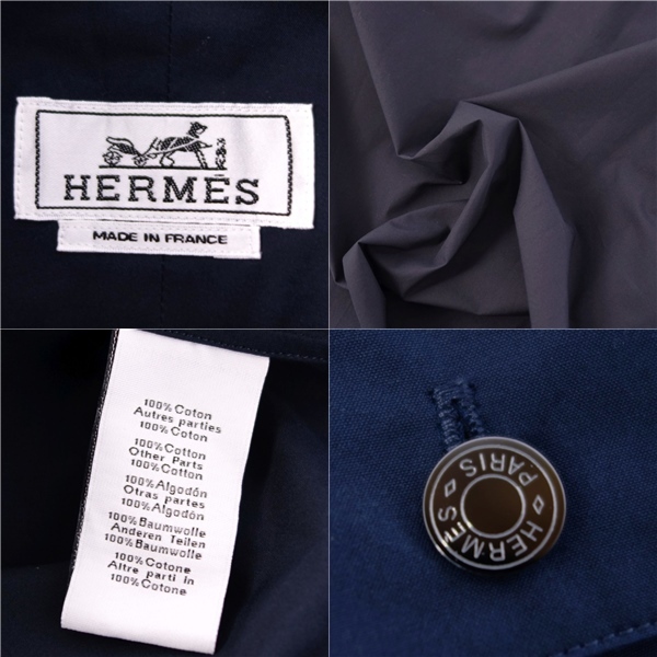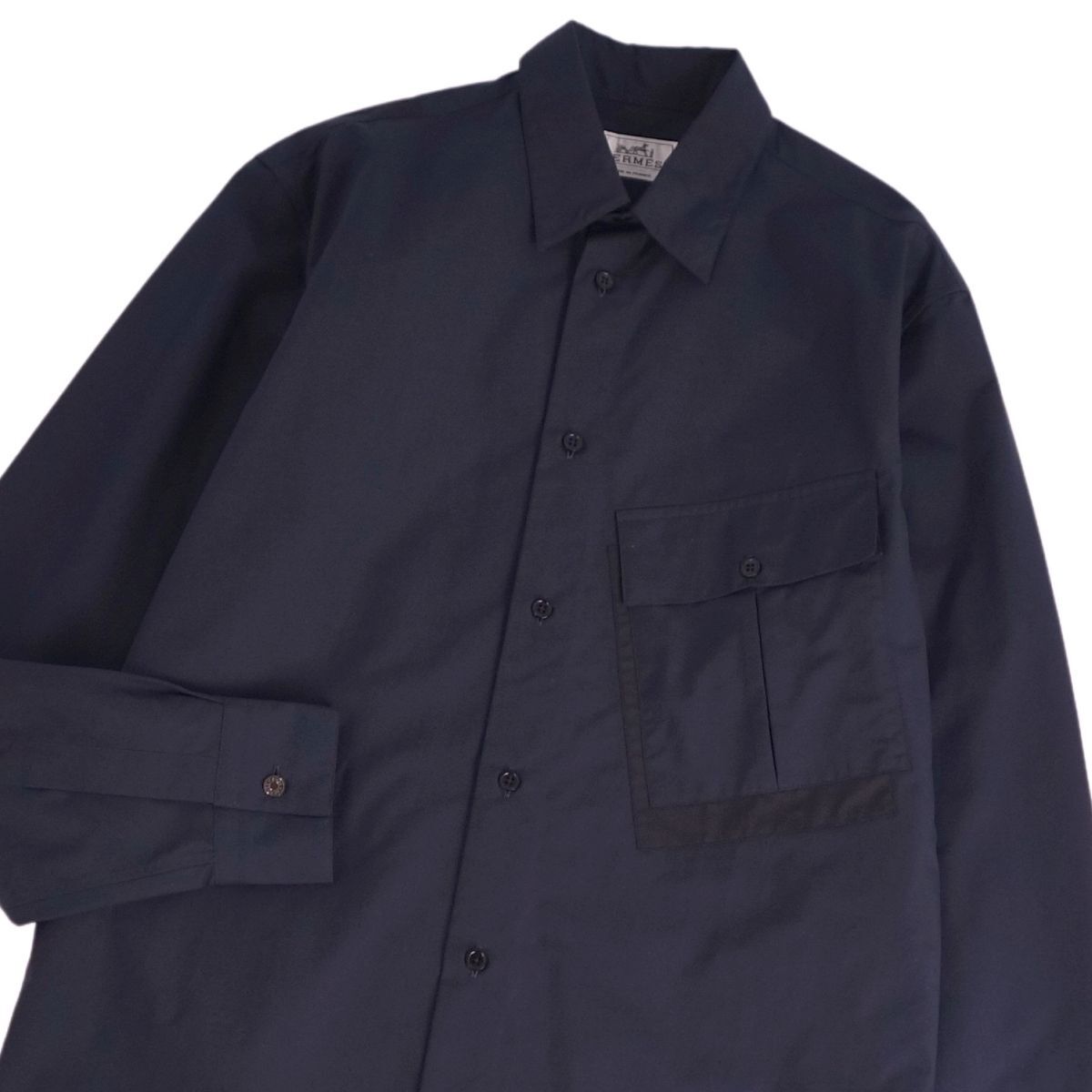 極美品 エルメス HERMES シャツ ロングスリーブ 長袖 コットン トップス セリエボタン メンズ フランス製 ネイビー |