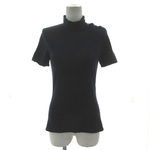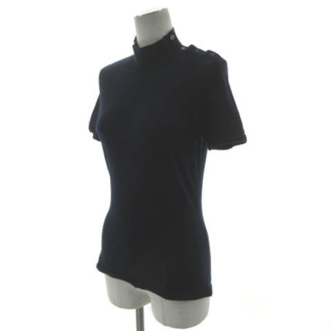 ブルックスブラザーズ BROOKS BROTHERS ハイネックニット セーター ショルダーボタン 半袖 ウール ネイビー 濃紺 M レディース