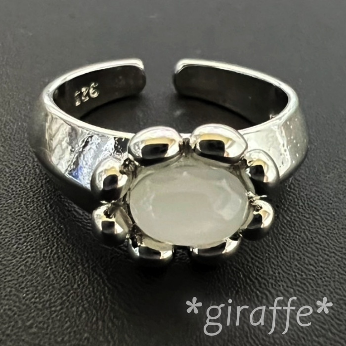 A964 匿名配送 指輪 レディース リング ホワイト ムーンストーン s925 シルバー フリーサイズ サイズ調節可能 花 フラワー 可愛い シンプル