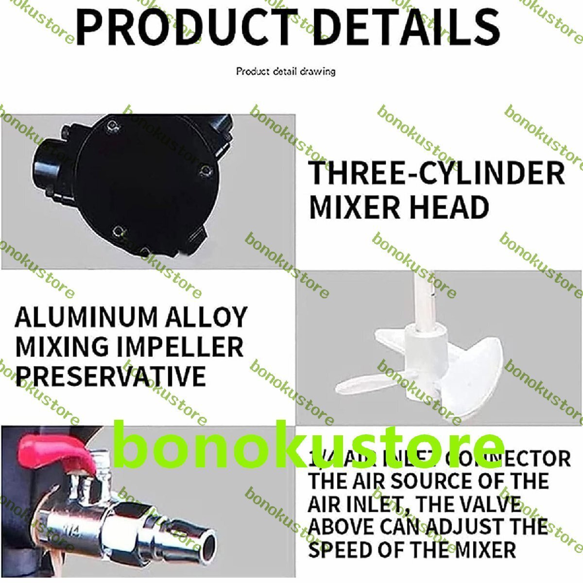 名前: 空気圧ミキサー モデル: 5ガロン 混合容量:20L 空気圧: 6-8mpa 速度: 1500-3000rpm シャフトサイズ: 1.2x52cm 重量: 12kg