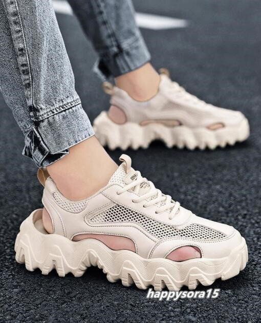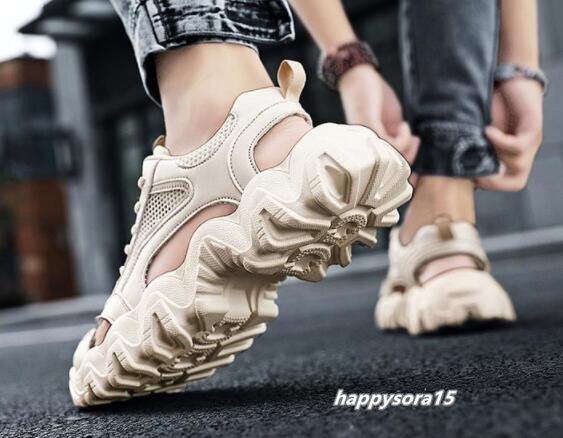 サンダル メンズ スニーカー シューズ スポサン ウォーキングシューズ 通気性 アウトドア 夏 ビーサン ベージュ 24.5cm