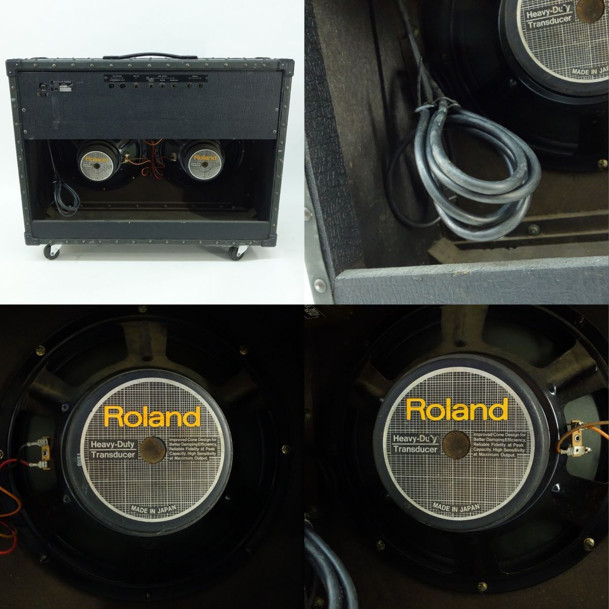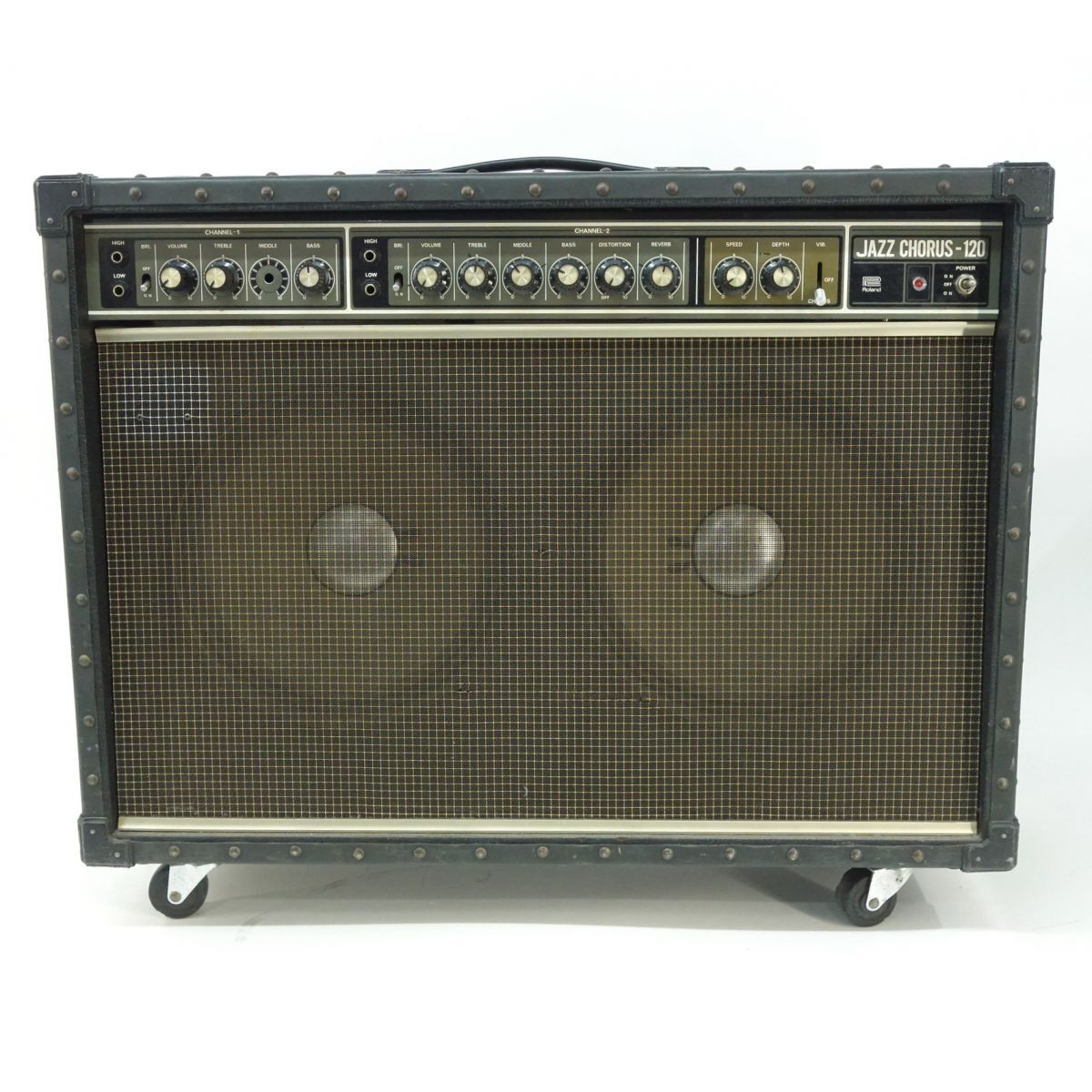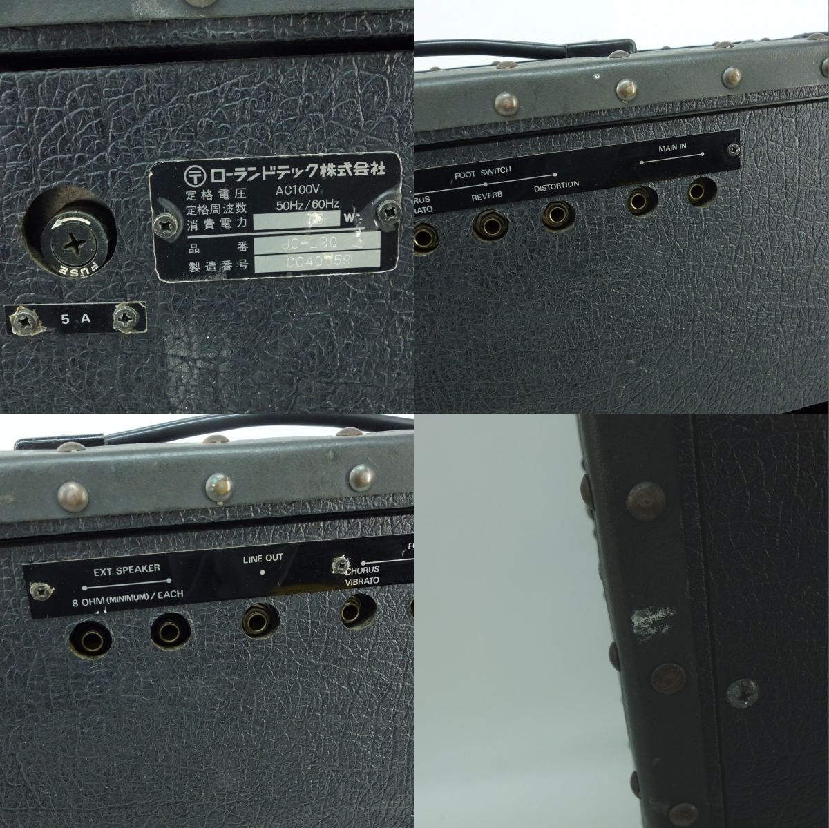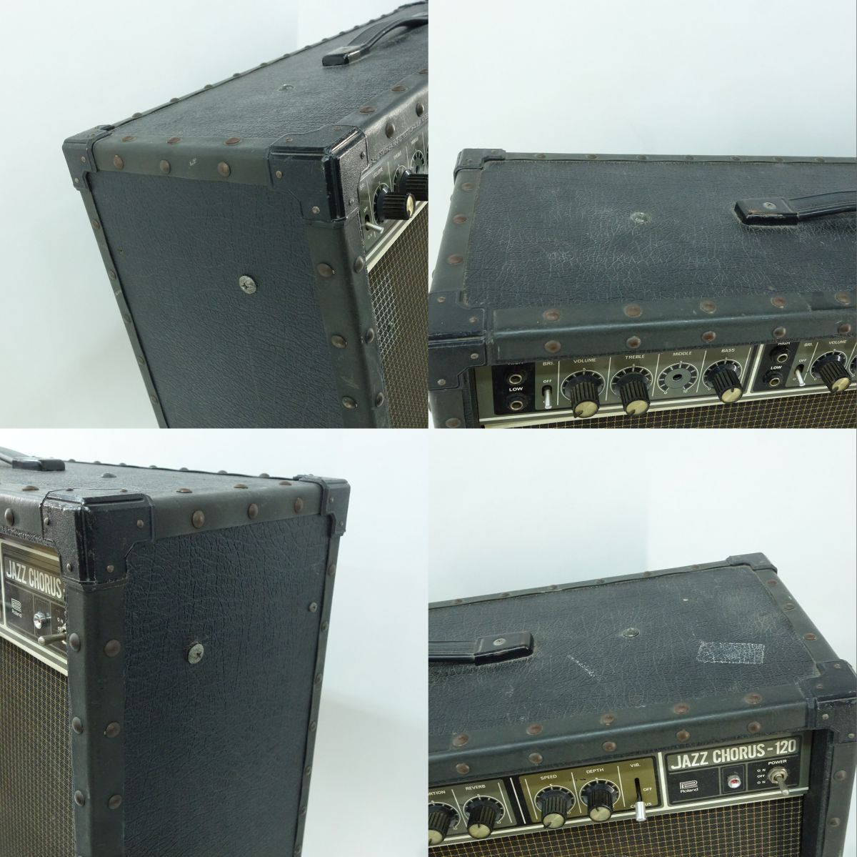093 Roland ローランド JC-120 JAZZ CHORUS-120 ギター用 アンプ コンボアンプ 本体のみ ※現状品 □内容品:本体のみ ※画像にあるもので全てです。 □外形寸法・重量(約)※キャスター含む W 760×H 622×D 280mm 28.7kg □現状品内容 ・動作確認は行っておりますが、 CHANNEL1のTREBLE、MIDDLE、BASSが効きません。 MIDDLE調整ノブ、ポッドが欠品しております。 上記理由により現状品として出品しております。 ※その他、把握できていない内容がある場合があります。 ※あくまで現状品として出品をしているため、記載にない不良個所や動作不良があったとしても返金などでの対応は出来かねます。 ご理解・ご納得いただける方のみご購入ください。 □状態 ・本体には擦れ、キズ、ヨゴレ、ホコリの付着があります。 ・コントロールパネルにペンで印が付けられております。 ・グリルクロスにほつれ、破れがあります。 □備考:なし ※クリーニングや消耗品の交換が必要な場合は購入者様でご対応ください。 ※画像では判別しづらいUSED品特有の薄い汚れや薄いキズ、細かいキズなどある場合があります。 |