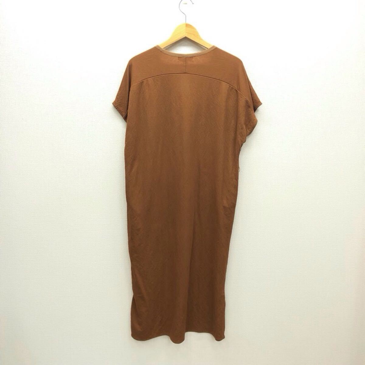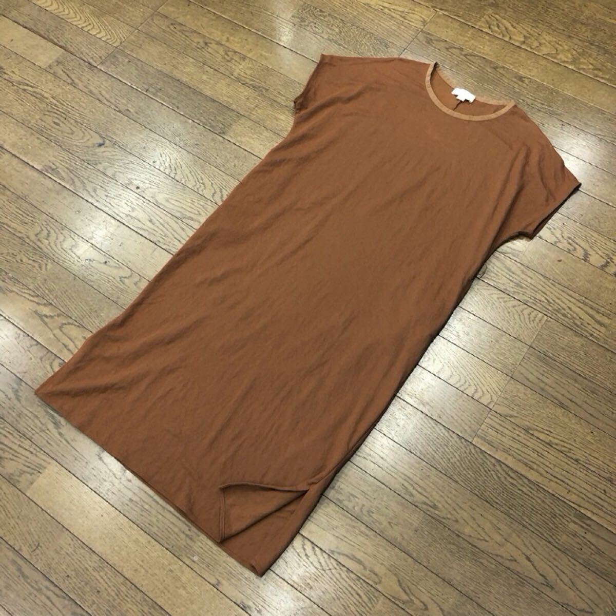 【ま037】B:MING by BEAMS ワンピース ONE ブラウン 半袖 ロング丈 無地 薄地 両裾スリット ブランド古着 ビーミングバイビームス 送料無料