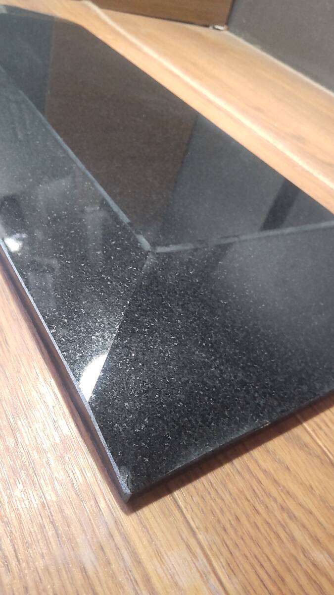 ・置いたときに手前から見える4面鏡面磨きです。面取りは細目グラインダー砥石で滑らかに仕上げてあります。裏面は切削面で凹凸はありません。