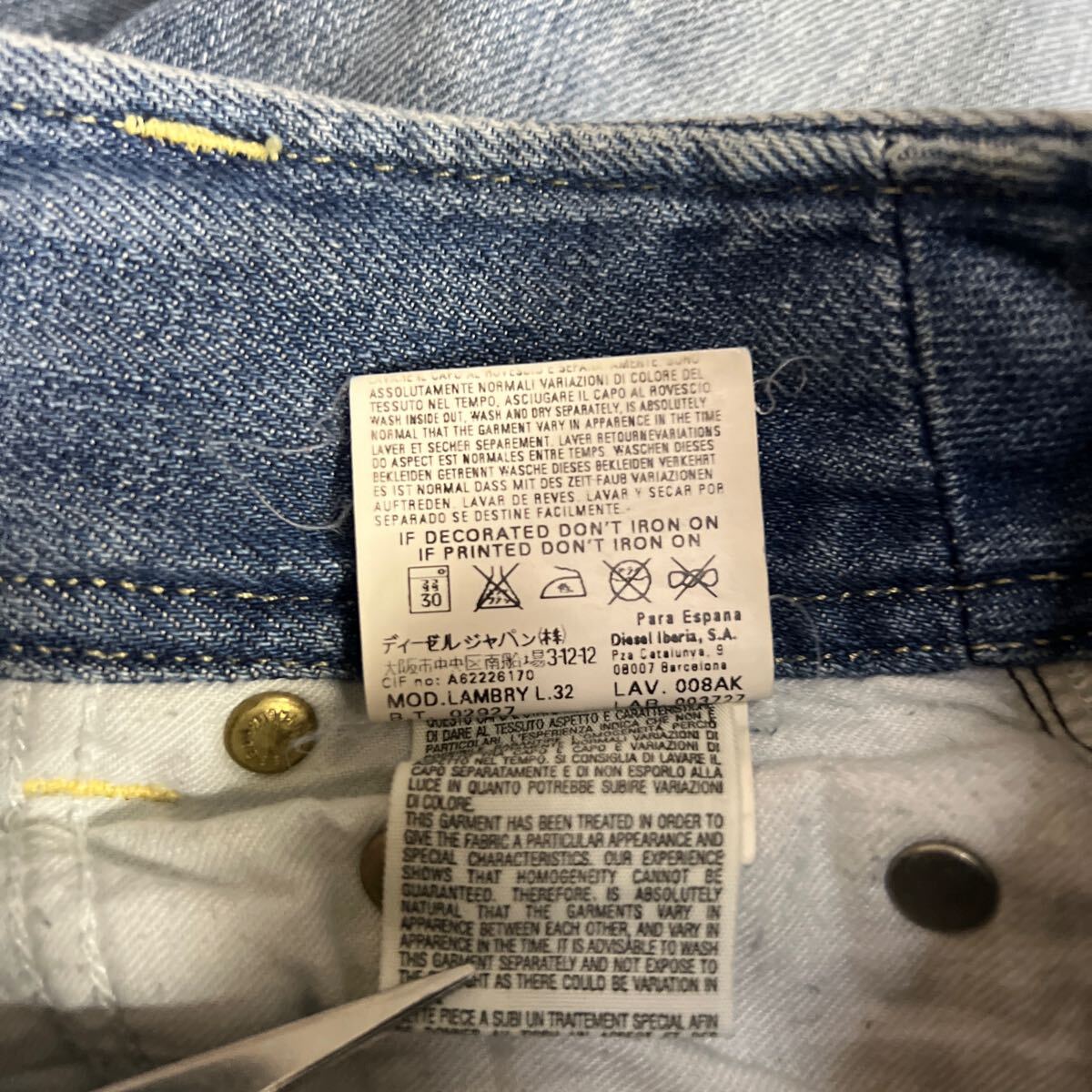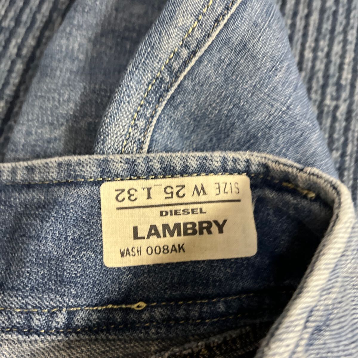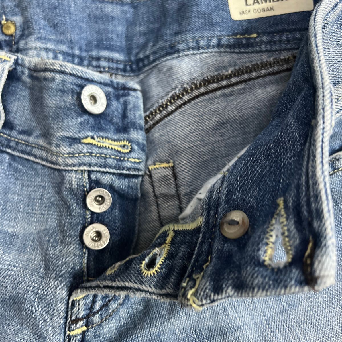 LAMBRY ロゴ パッチ ユーズド 色落ち ダメージ加工 リネン混 ブーツカット デニムになり大変格好良くお洒落で格好いいです