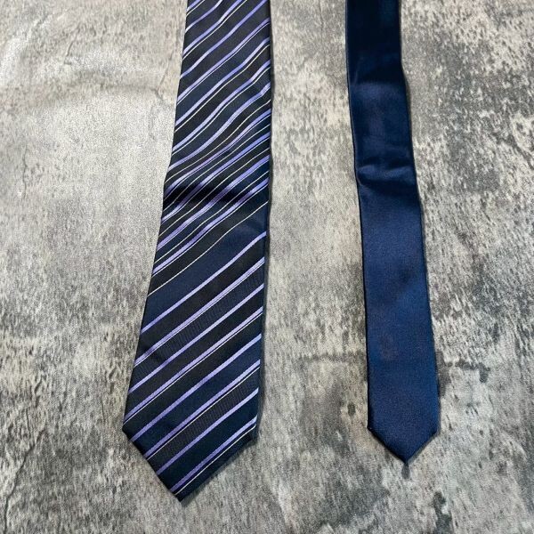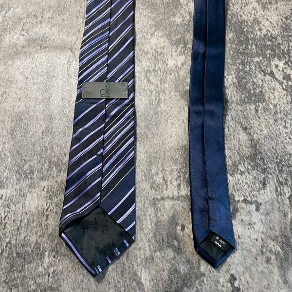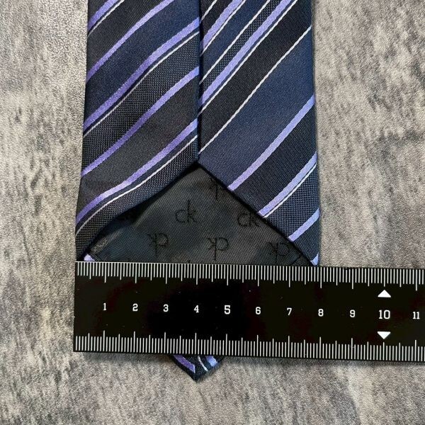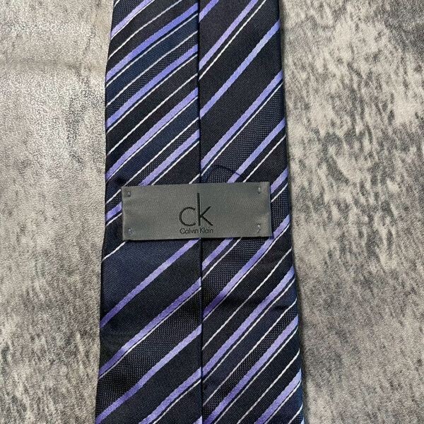 [KN260] Calvin Klein ネイビー×パープル ストライプ シルク ネクタイ
