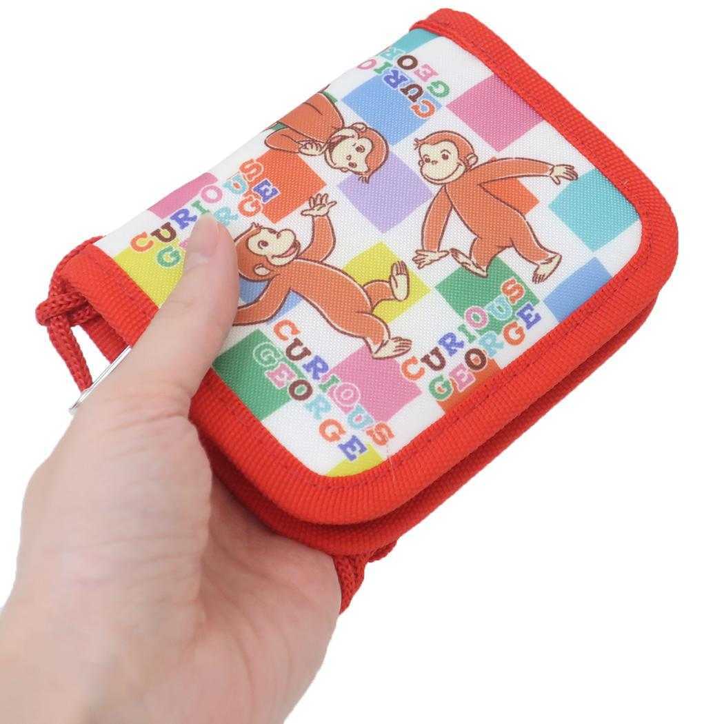 首から下げれるネックストラップ付き 世界中で愛されている人気絵本[キュリアスジョージ/おさるのジョージ]グッズにまたまた可愛いnewアイテム登場こちらは定番人気アイテム[ラウンドウォレット]全面ファスナー付きでカードポケット、面ファスナー付きのコインケースなど充実。安全装置つきのロングストラップ付きで首から下げることが出来ます。かわいいキッズウォレットいろいろあるのでお気に入りを探してください。サイズ:約120x95x15mm素材:PVC/ポリエステル