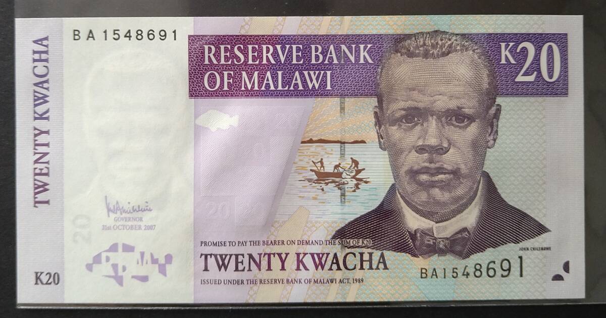 マラウイ・20クワチャ紙幣(1枚)の【中古】です。