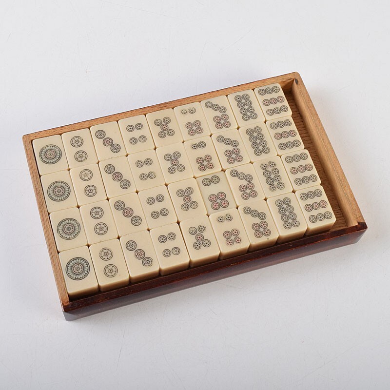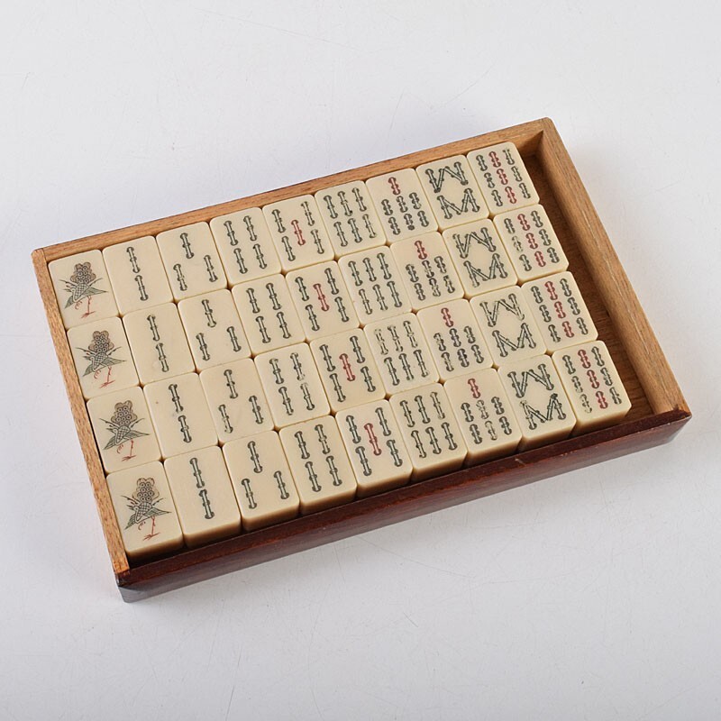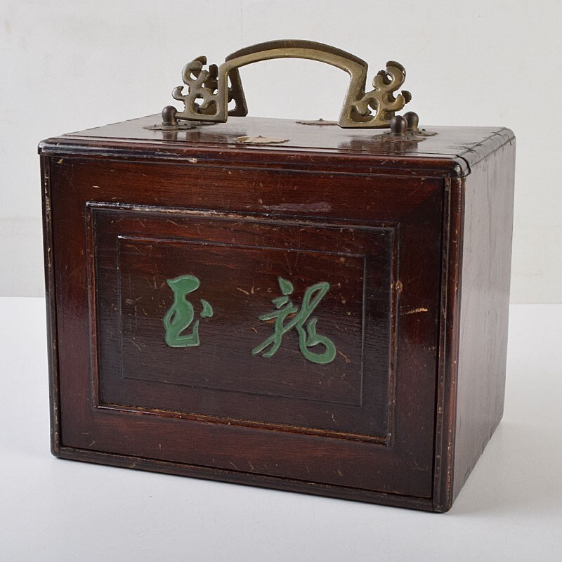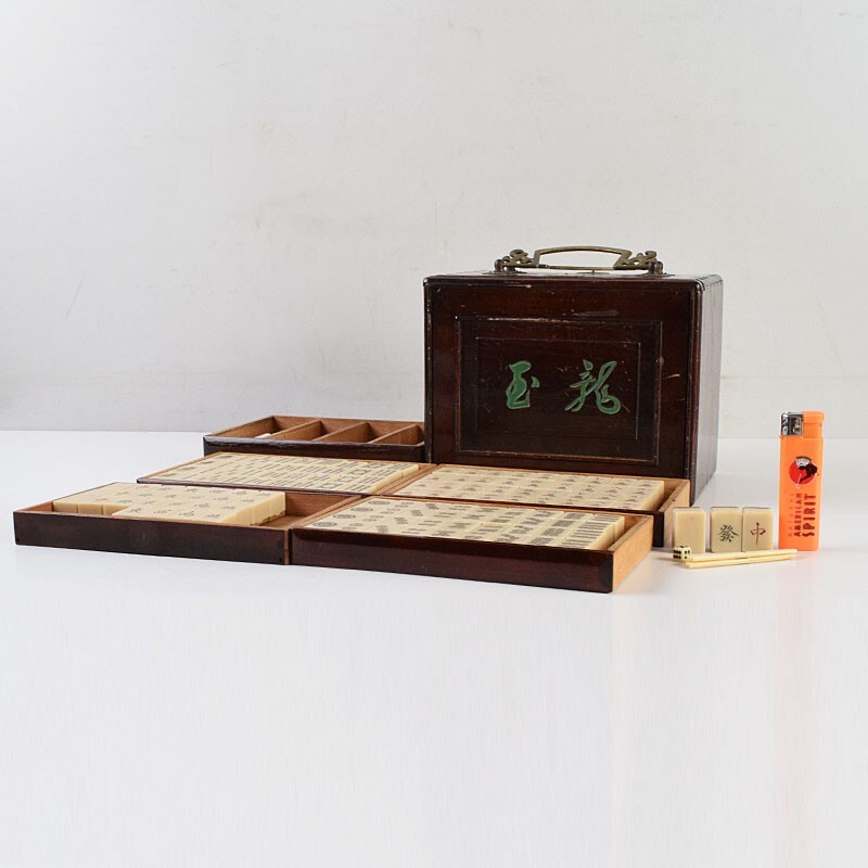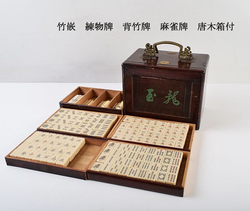 【中国美術 竹嵌 練物牌 背竹牌 麻雀牌 唐木箱付 古玩 VQJU】