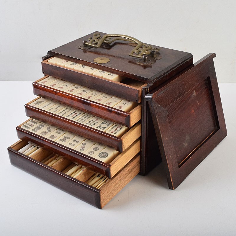 中国美術 竹嵌 練物牌 背竹牌 麻雀牌 唐木箱付 古玩 VQJU