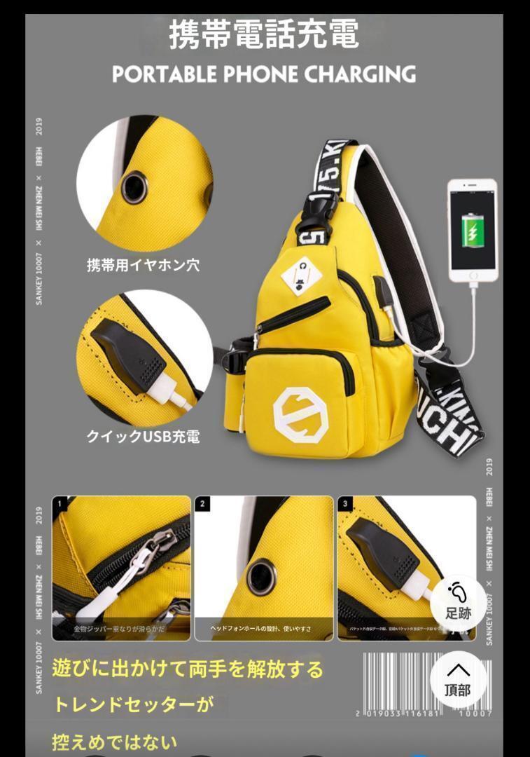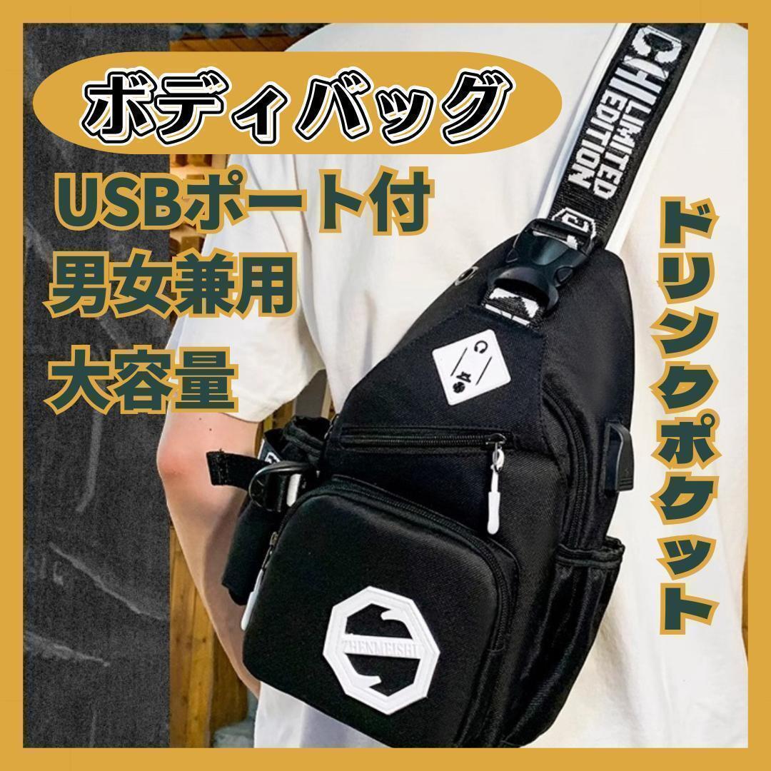 【商品名】ボディーバッグ 黒 USB差し込み口付き A0008-B