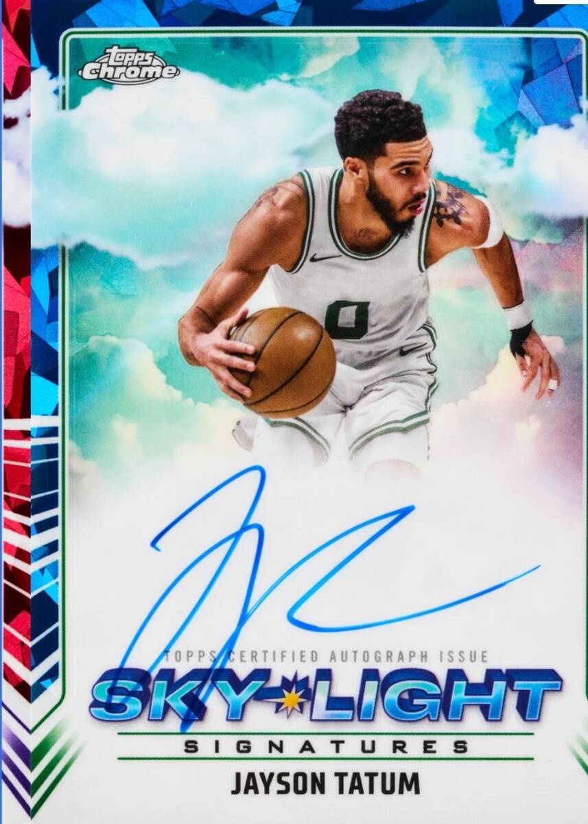 Look for the following Sapphire Refractors: Green #’d/99, Gold #’d/50, Orange #’d/25, Purple #’d/10, Red #’d/5, and 1/1 Padparadscha. Also unwrap Sapphire Exclusive Autographs in: Topps Chrome Autographs (#’d from 25 down to 1/1), SKY-Light Signatures (#’d from 25 down to 1/1), Next Stop Signatures (#’d from 25 down to 1/1), Certified Rookie Autographs (#’d from 50 down to 1/1), and 1973 Topps Autographs (#’d from 25 down to 1/1). Sapphire Exclusive Inserts include Sapphire Selections—featuring the 25 best rookies from the 2024 Draft, and Infinity, which features 25 of the most collectible players in the game!