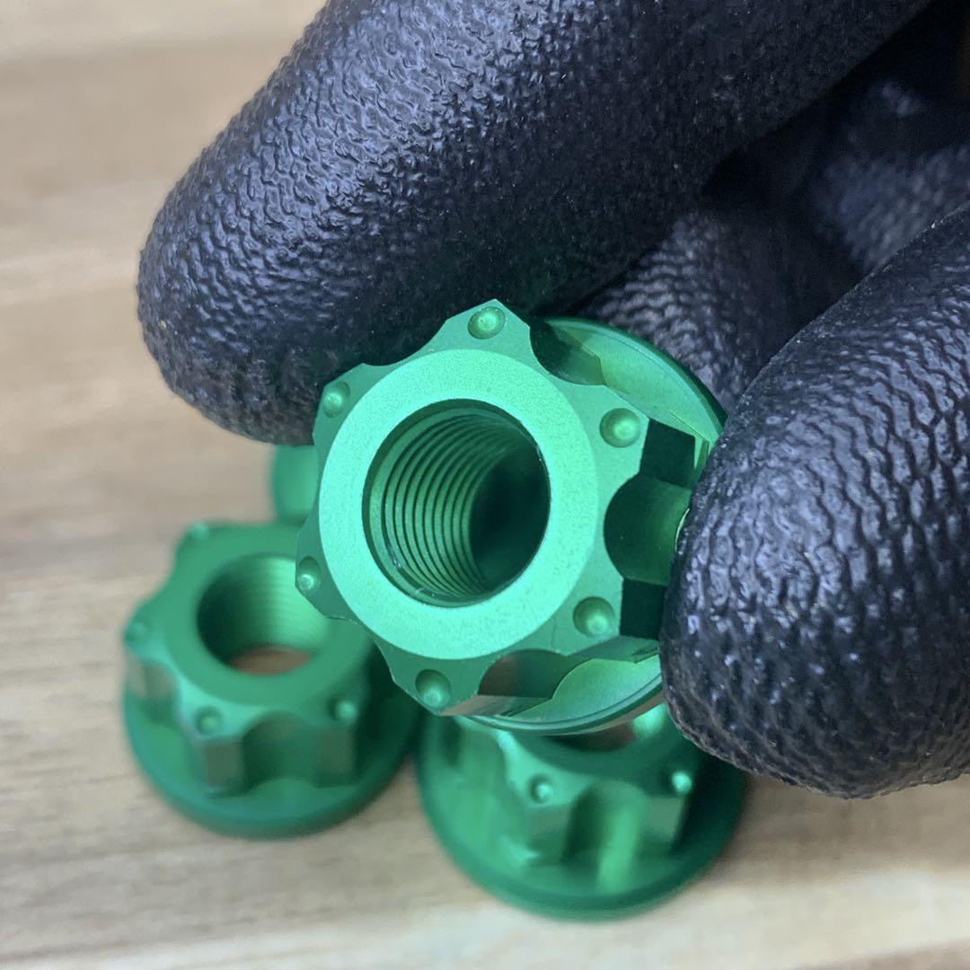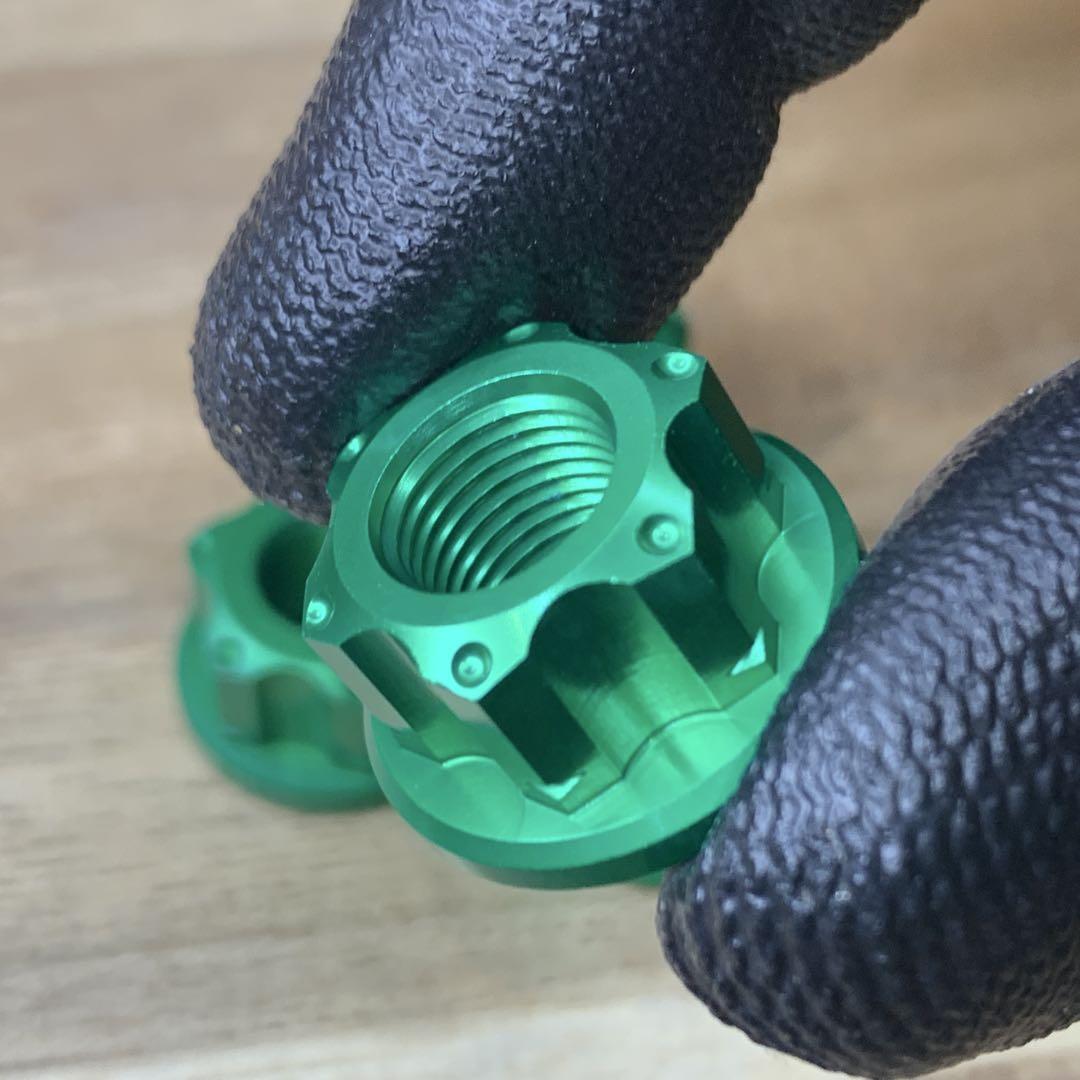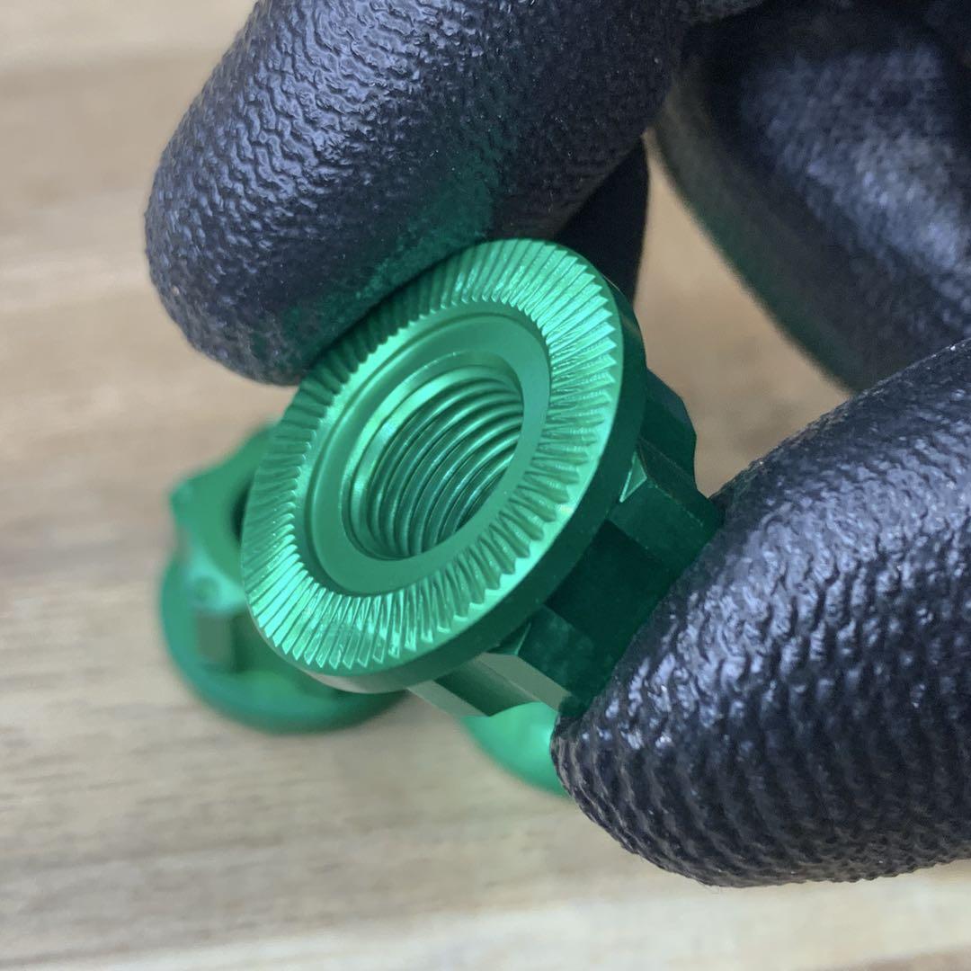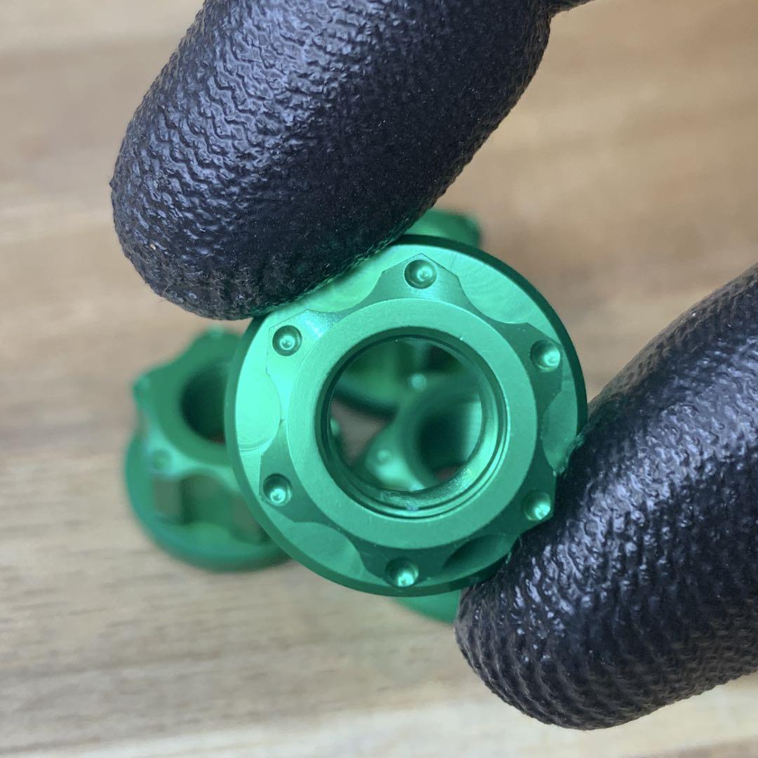 シングルギアやピストホイールのハブナット各2個セットの出品になります。こちらのカラーはグリーンです