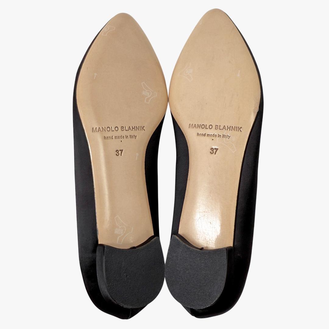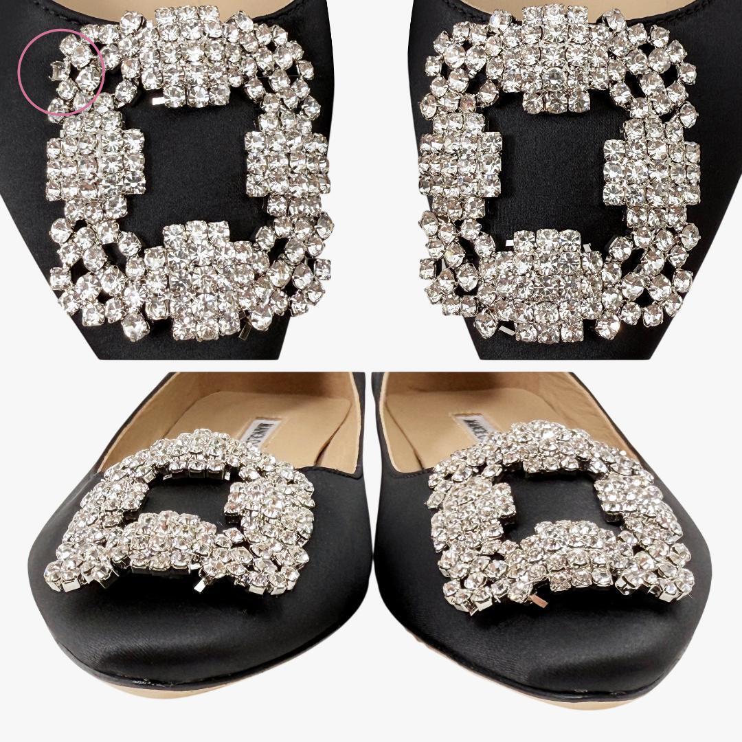 定価21万【未使用】マノロブラニク ハンギシ パンプス バレエシューズ バレリーナ フラットシューズ サテン 黒 37 24 ビジュー ストーン