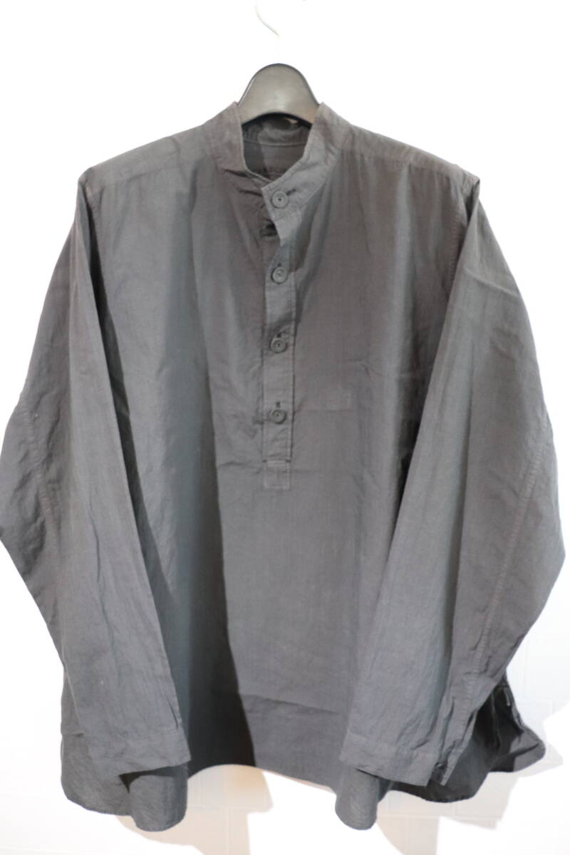 『送料レターパック対応可能   Archive   ARTS&SCIENCE   バンドカラープルオーバーブラウス   後染め   メンズ2サイズ(大き目)   チャコール系』