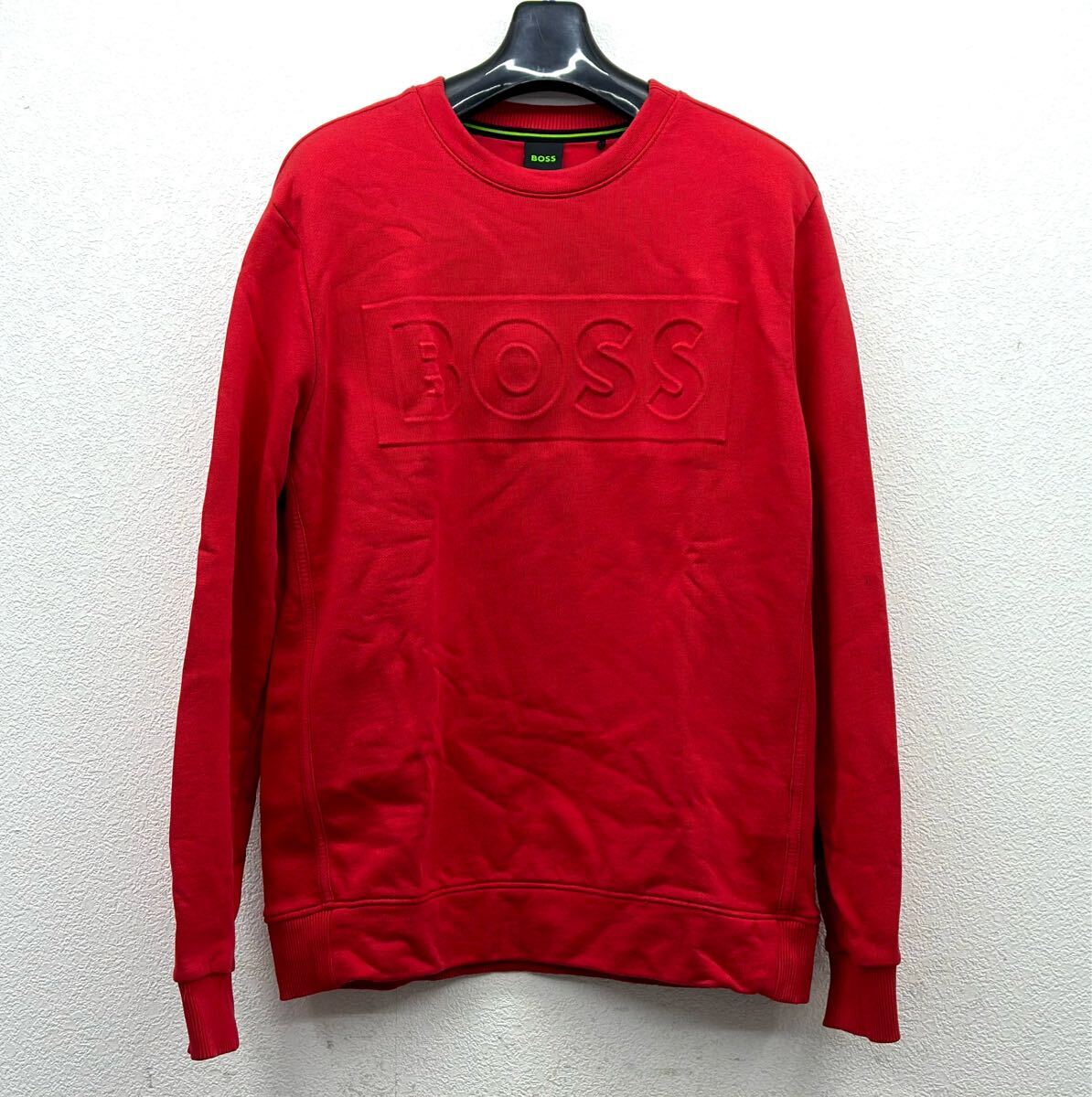 美品■HUGO BOSS ヒューゴ ボス トレーナー エンボス ロゴ スウェット 丸首 メンズ 赤 レッド■OJ 25-064