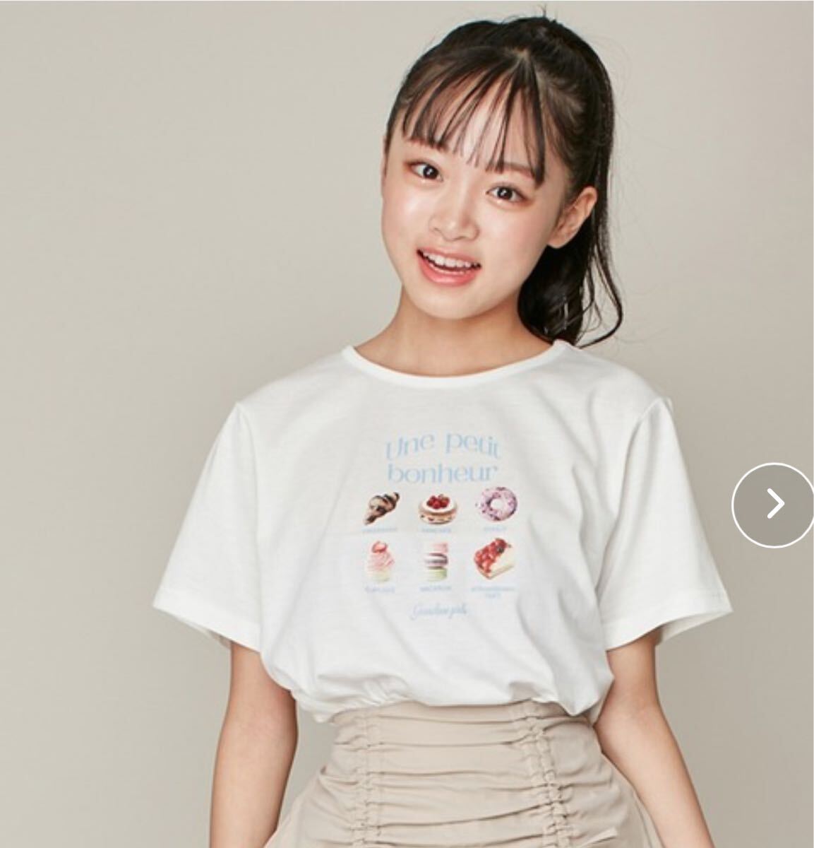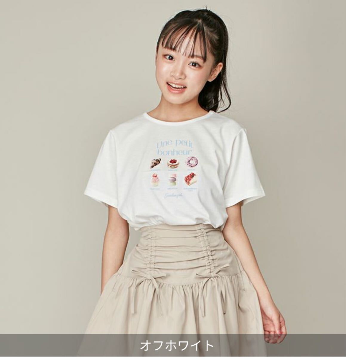 フロントにスイーツがいっぱいのオリジナルデザインが可愛いTシャツ♪