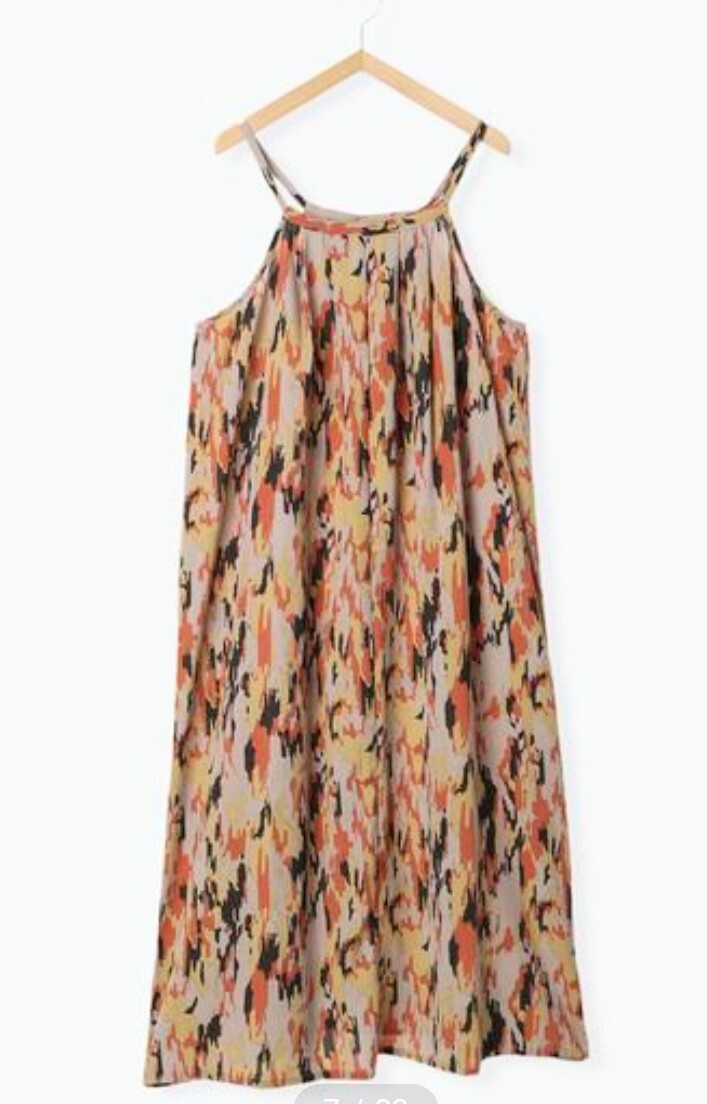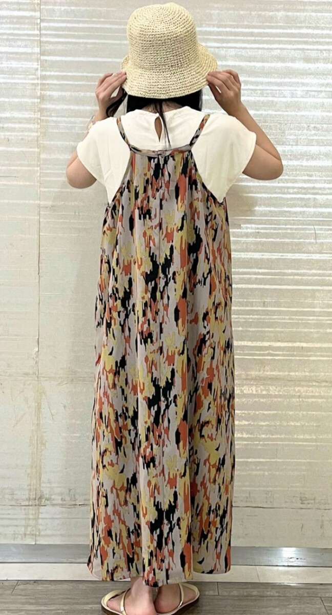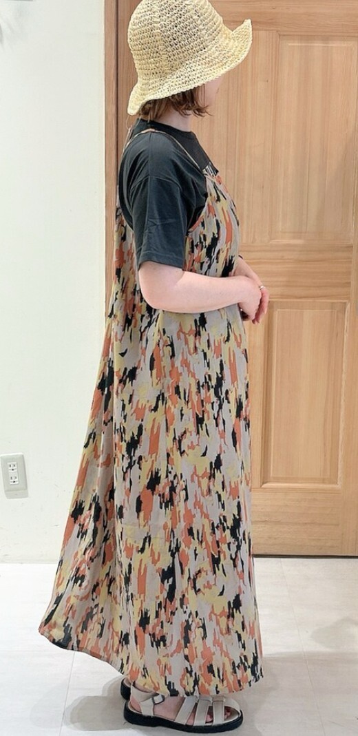 アーティスティックなプリントデザインが存在感を放つキャミワンピース。タックの生み出すゆるやかなフレアシルエットで、大人の女性らしさを演出してくれます。軽やかにスタイリングできる楊柳生地もポイント◎着こなしもサマ見えする存在感のあるアイテムです。