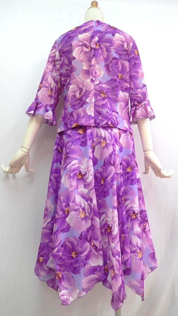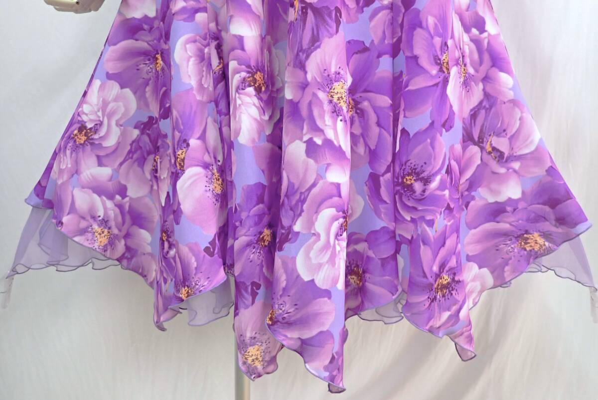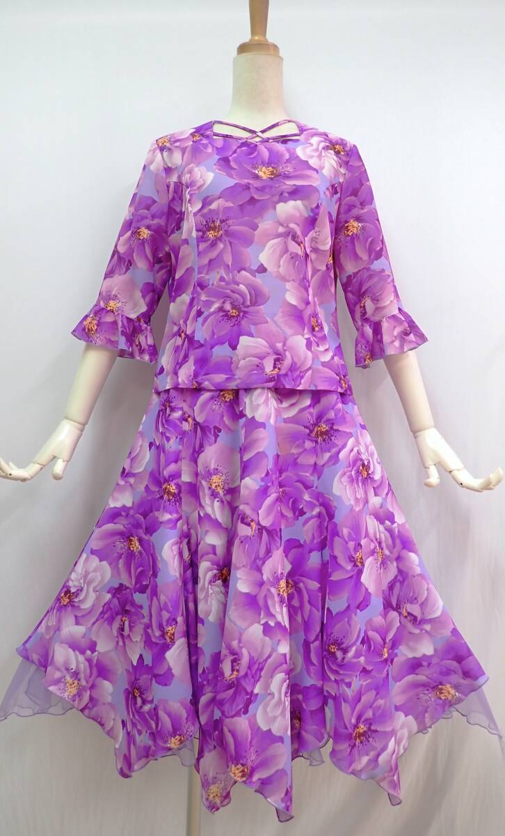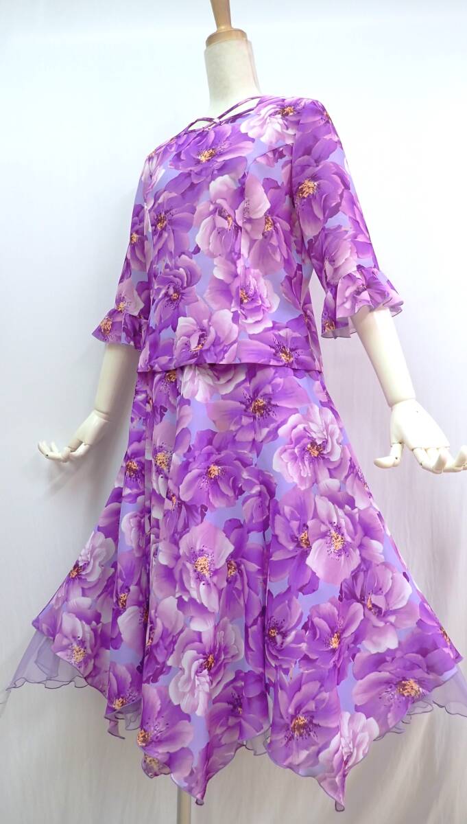 ③25G18★M★日本製★紫/花柄/セットアップ/スタンダードドレス☆社交ダンス/モダン/パーティー