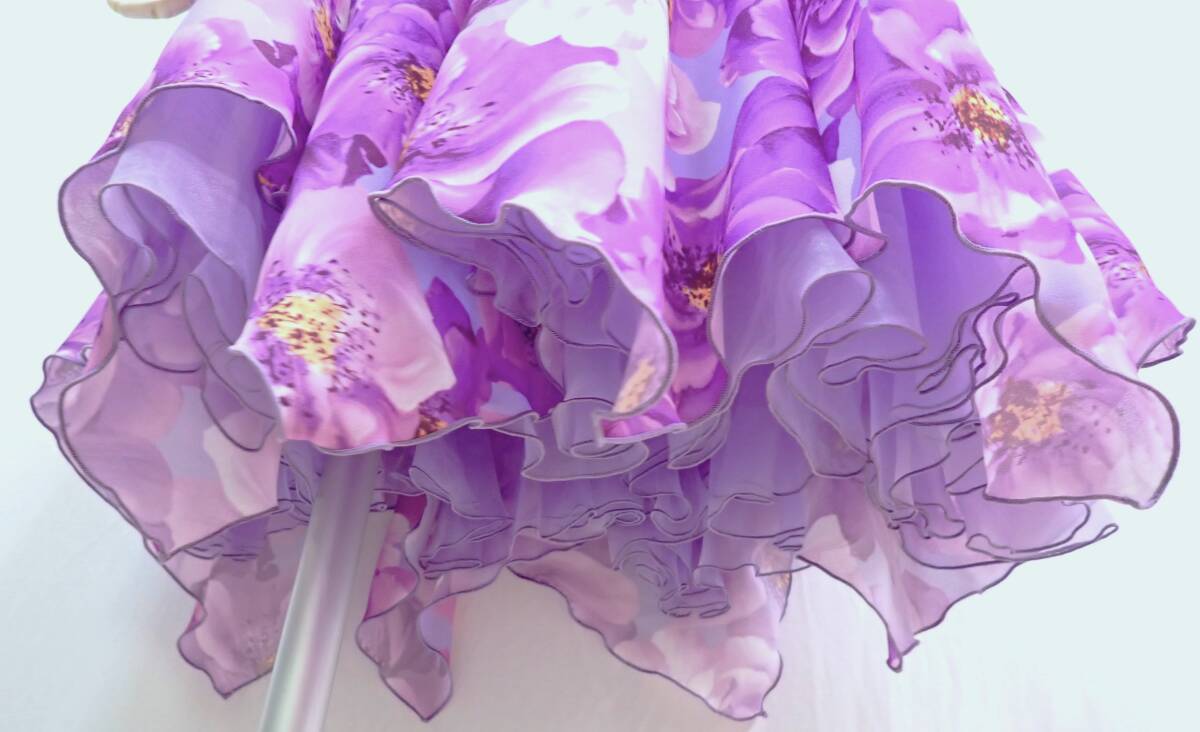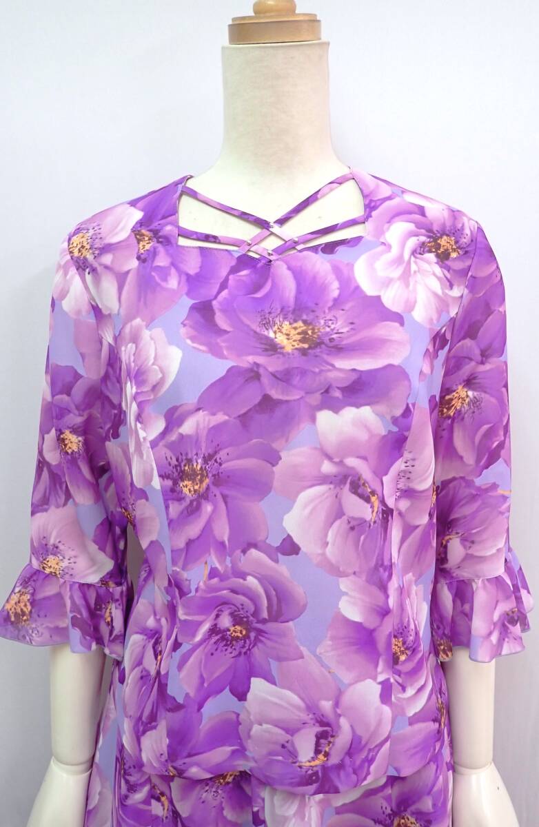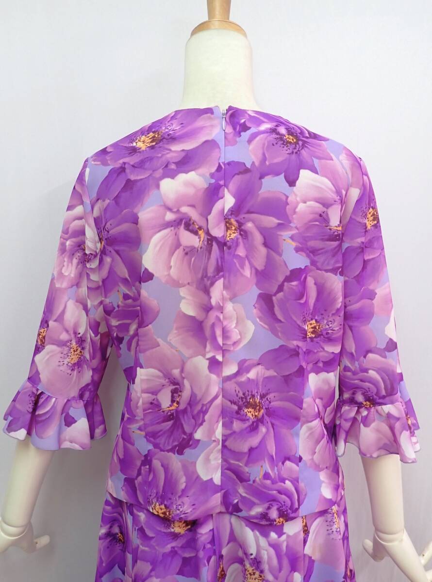 ③25G18★M★日本製★紫/花柄/セットアップ/スタンダードドレス☆社交ダンス/モダン/パーティー