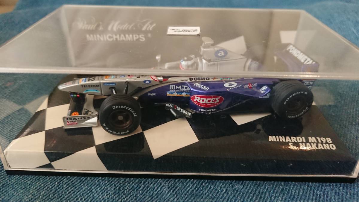 ミニチャンプス製、1998年シーズンのミナルディフォードM198、22号車、中野信治のモデルカーです。ケース、本体ともに美品です。ミニカーは大量生産品のため、デカール等個体差が生じてしまうことをご理解のうえ入札願います。完全品をご希望の方は、入札をご遠慮ください。ゆうパックにて発送します。東京都内700円、東北・関東(東京都以外)・信越・北陸・東海は760円、近畿は870円、中国・四国は1,030円、北海道・九州は1,290円、沖縄は1,330円となります。まとめて落札いただいた場合は、別途連絡します。