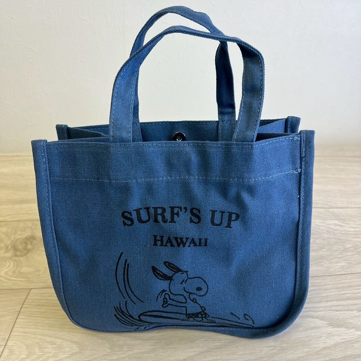 ミニトートバッグはサーフボードに乗ったスヌーピーがプリントされた限定のデザインです。