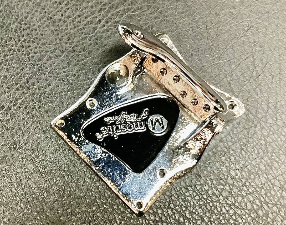 ◆  MosriteのVintage等で使用されているのは 真鍮の合金製 ( ブラス製造 ) です。  楽器用のパーツには昔から響きが良くサスティーンにもいい影響を及ぼすので、ブラス素材が多く使用されています。