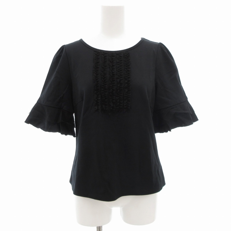 トゥービーシック TO BE CHIC シルケットポンチ プルオーバーカットソー 半袖 チュールフリル 40 黒 ブラック /GV レディース