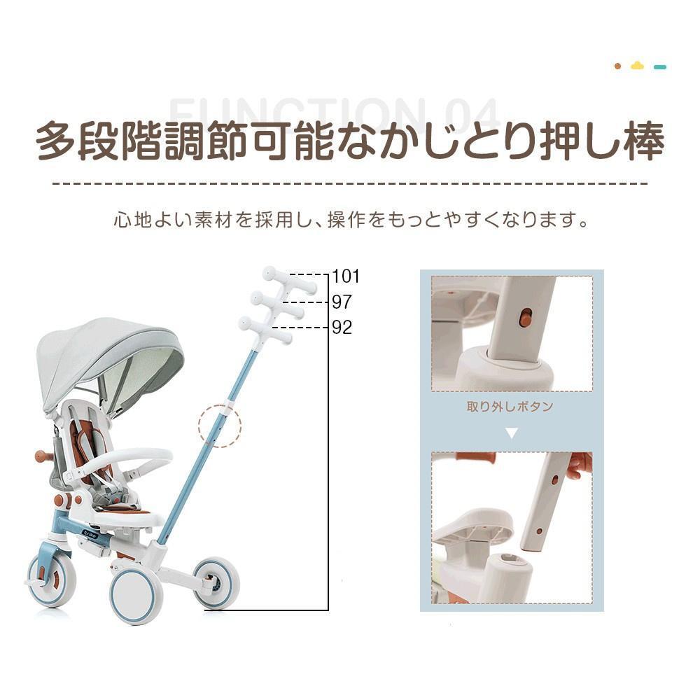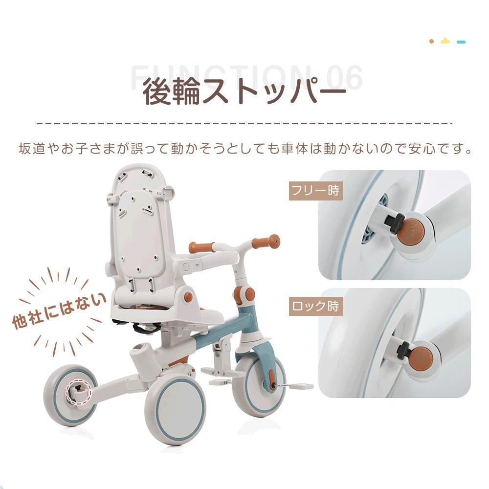 【お子様の成長に合わせて長く楽しめる】 ①対面向き:6~12ヶ月 対面式で親子のコミュニケーションがアップできるし、赤ちゃんに十分な安心感も与えられます。 ②三輪車(押し棒&背もたれ&ベルト付き):1~2歳 子供が自由に歩ける前通常の三輪車としてお使いいただけます。 スデップに足を置けるので、ペダルに足が届かなくても大丈夫。 ③安全ガード付き三輪車:2~3歳 三輪車に慣れる前に360°お子様を落下から守れます。④押し棒付き三輪車:2~3歳 保護者の方が進行方向を決めて動かすことができす。公園や近所のお散歩時などに使用します。 ⑤三輪車:3~4歳 かじとり押し棒を外して、通常の三輪車としてお使いいただけます。 ⑥ランニングバイク:4~5歳 バランスやコントロールを身につけられ、自転車に乗るための練習用として最高です。 ⑦自転車:5-6歳 ペダルを前輪につけてこぎながらバランスをとる練習ができます。