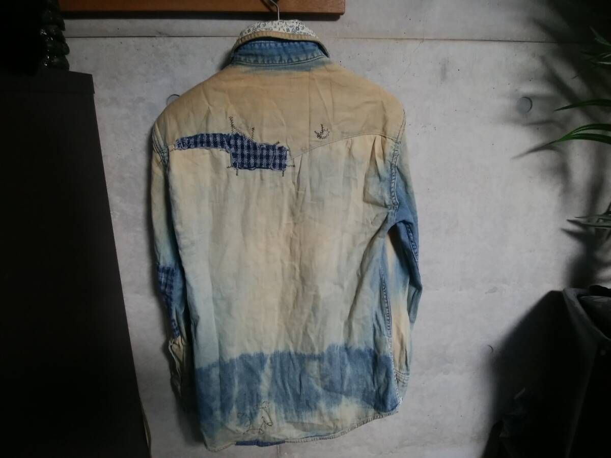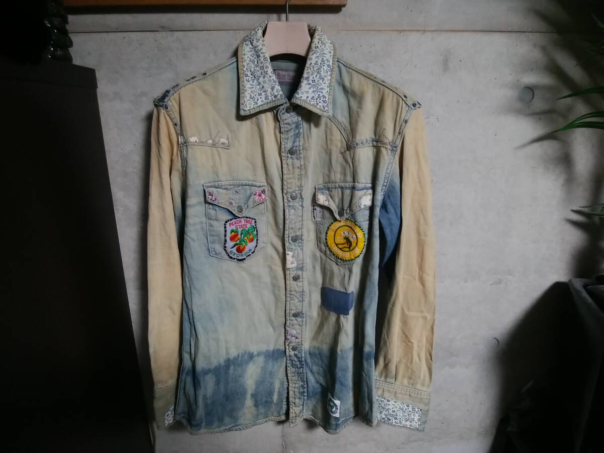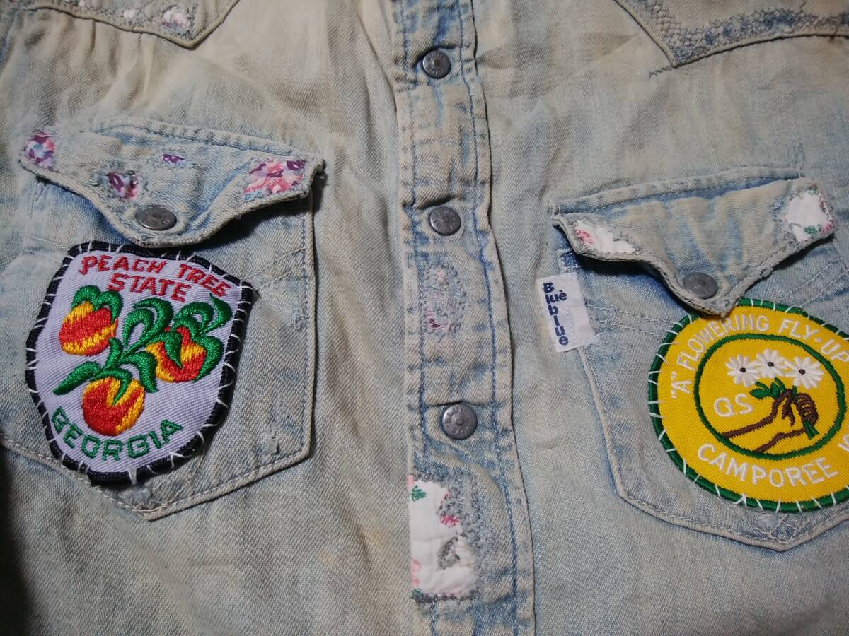 【H.R.MARKET ハリウッドランチマーケット BLUEBLUE ブルーブルー】ウエスタンデニムシャツ1 日本製 フラワーリメイク キムタク着 名作