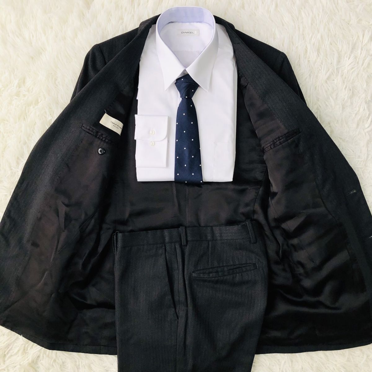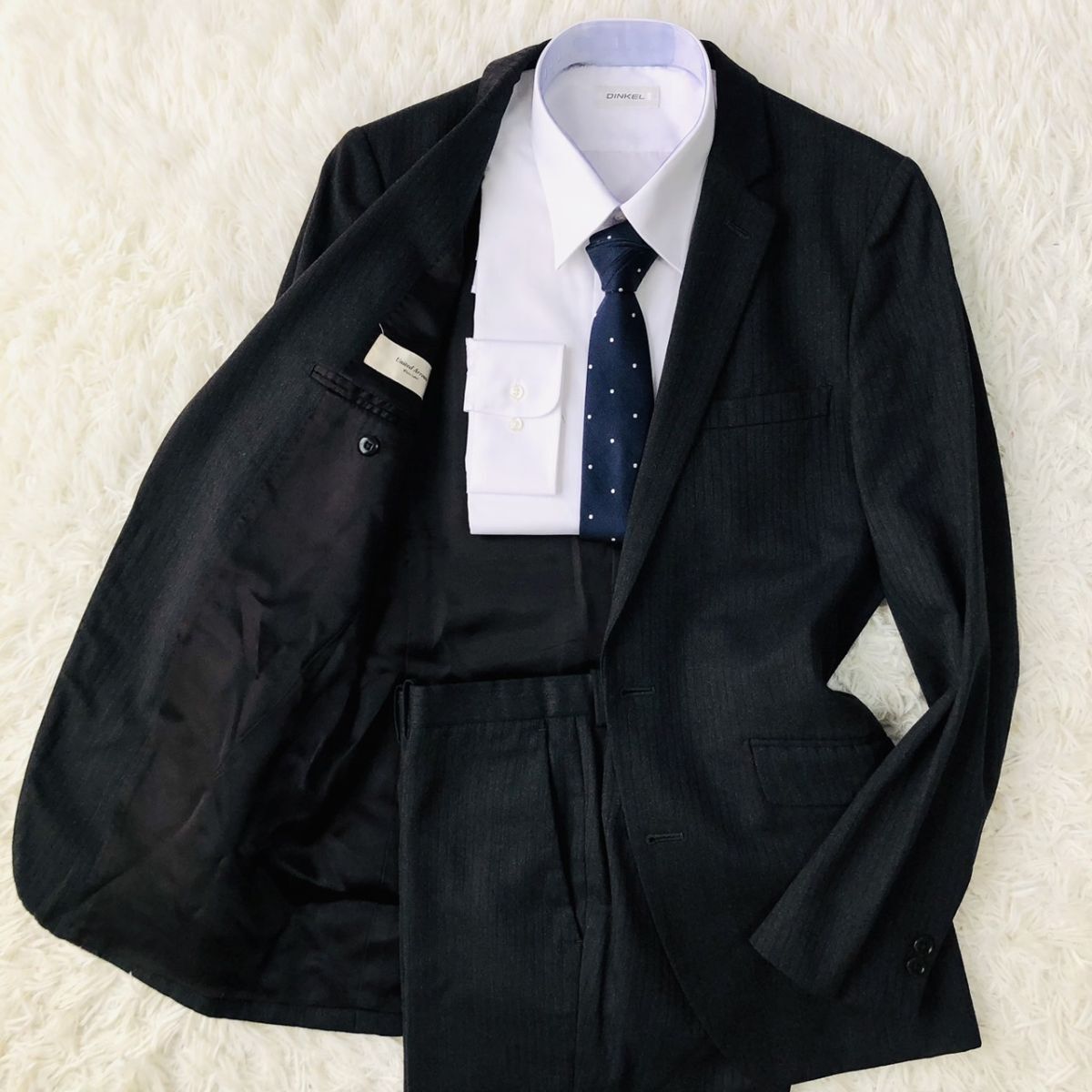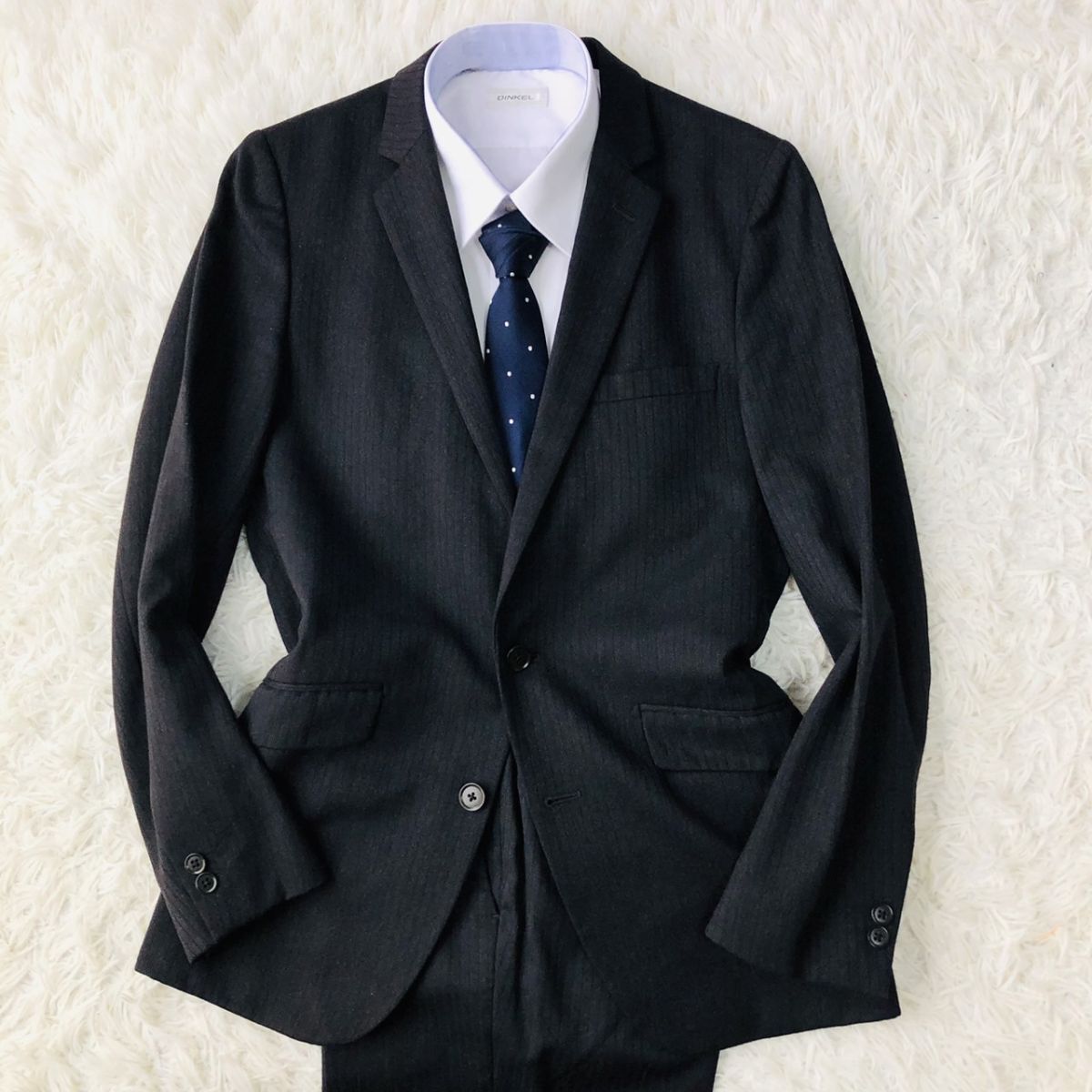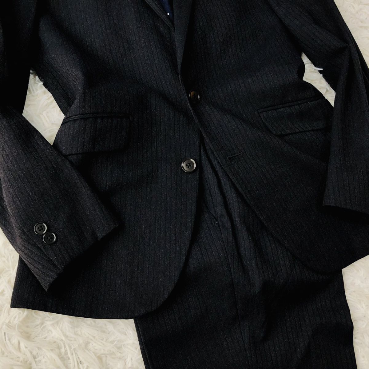 ユナイテッドアローズ【UNITED ARROWS】セットアップスーツ テーラードジャケット ストライプ ウール 総裏 グレー サイズ2 ビジネス 82