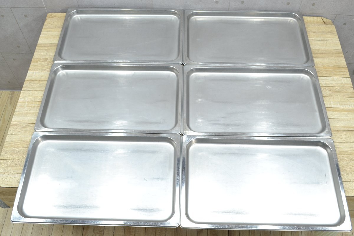 C2494■KYS■ホテルパン 6枚セット■1/1×25mm■ガストロノームパン■外寸 よこ530mm×たて328mm×深さ25mm