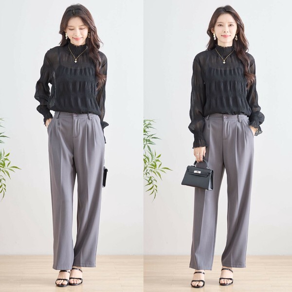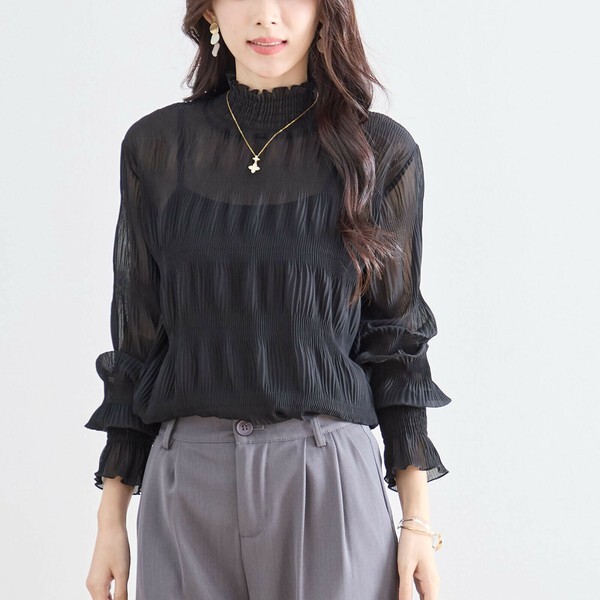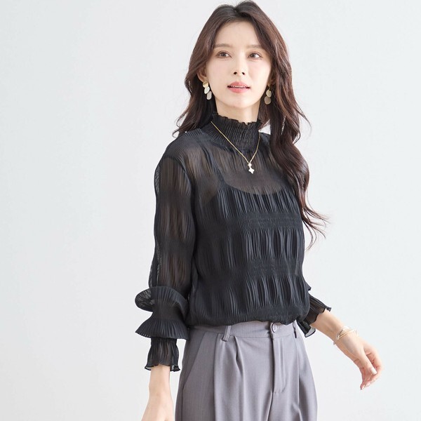 ・ハイネック×シャーリングデザインで、上品なニュアンスをプラス