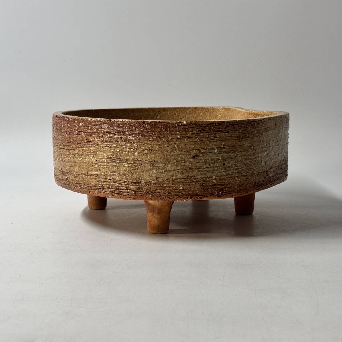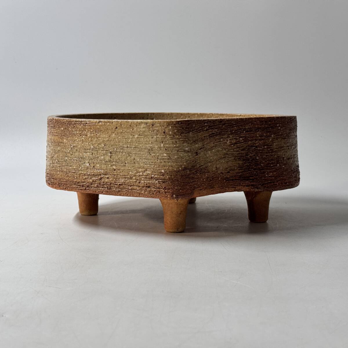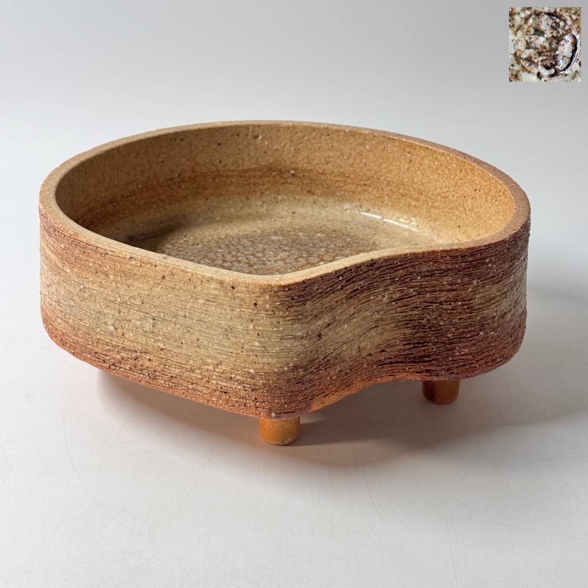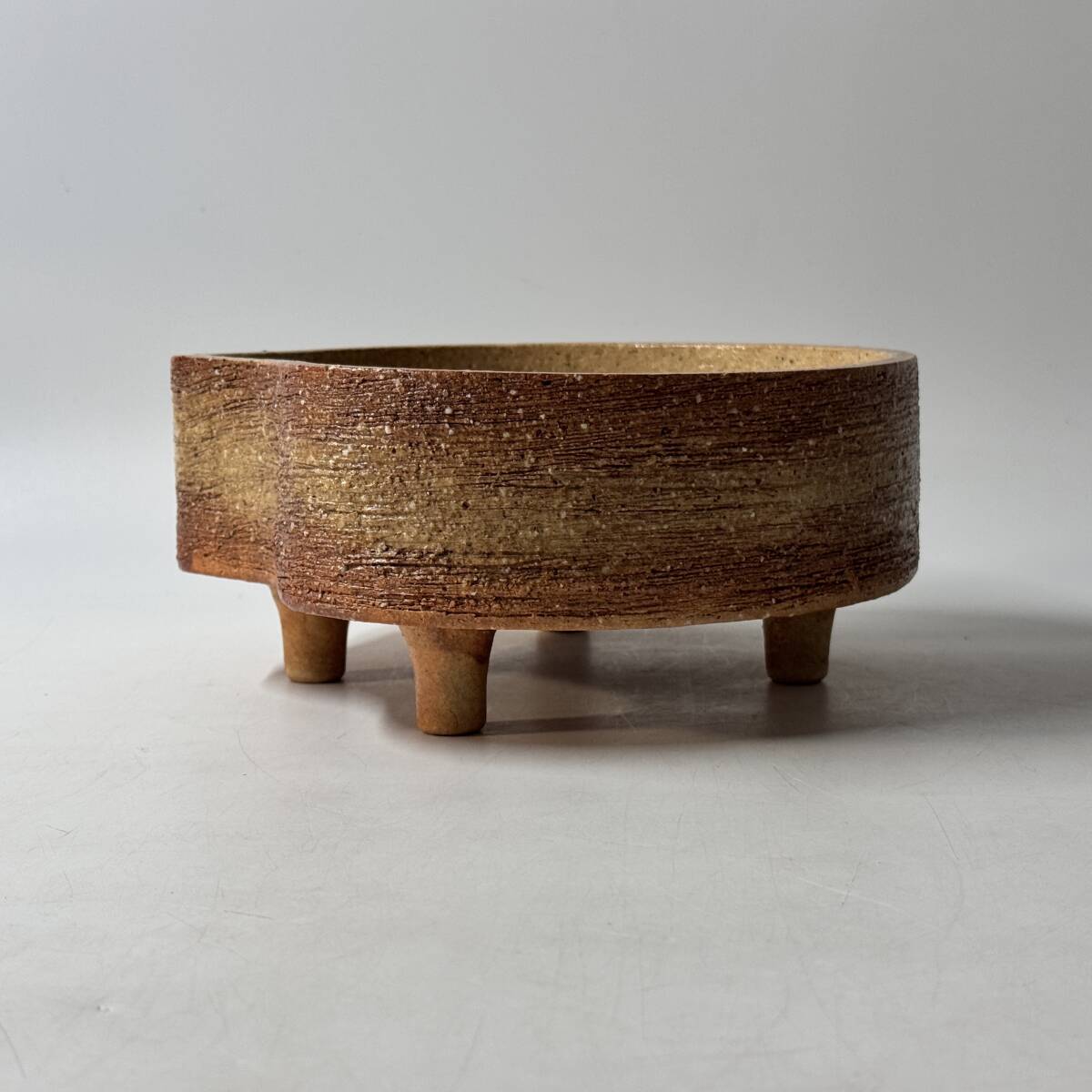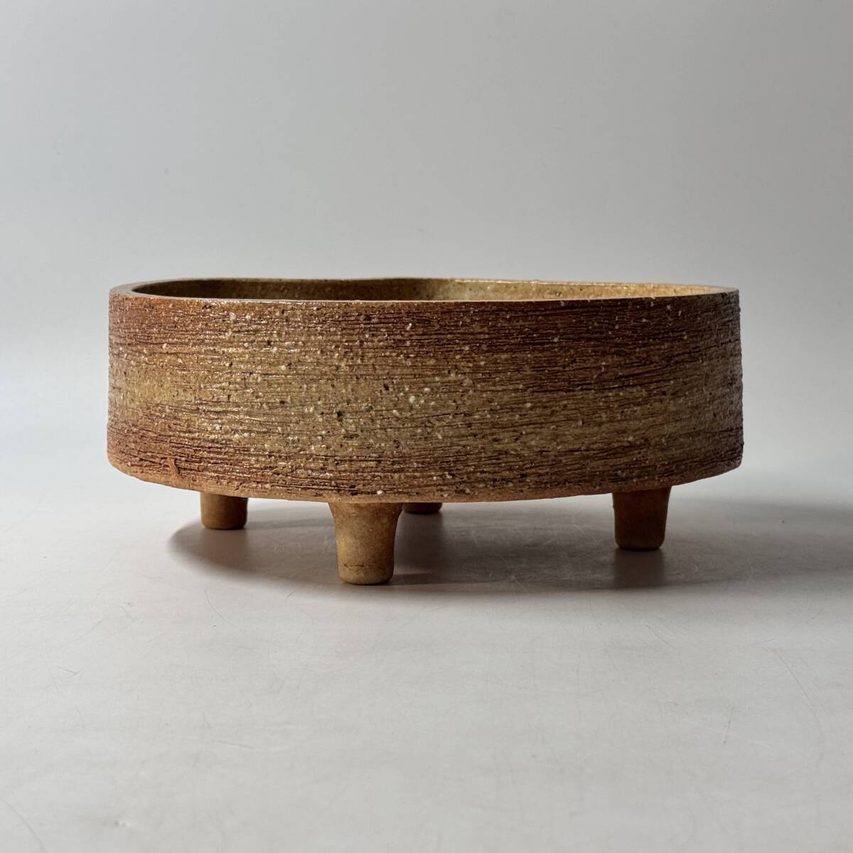 在銘 印銘判読不明 産地 窯元 作家名不詳 足付き水盤 花器 花瓶 花入 花生 華道具 茶道具 経年保管品 現状品の出品です。