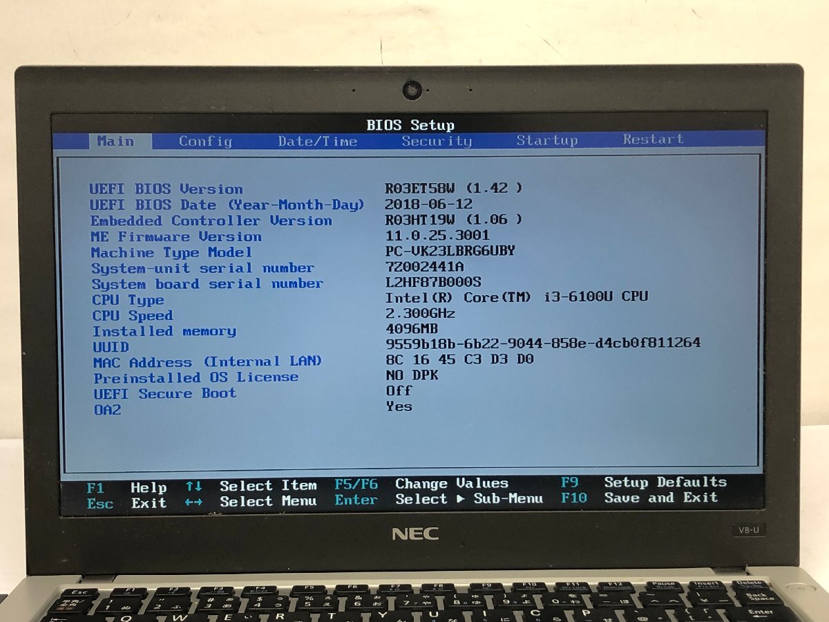 ジャンク/ NEC PC-VK23LBRG6UBY Intel Core i3-6100U メモリ4.1GB ストレージ無し 【K20475】