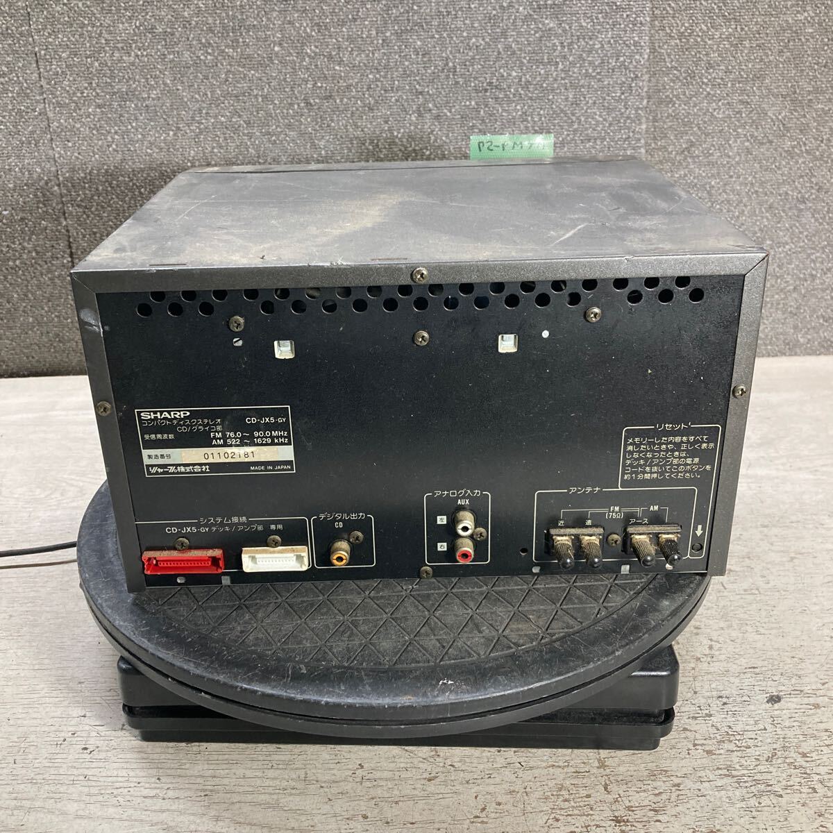 MYM9-57 激安 SHARP コンパクトディスクステレオ CD/グライコ部 CD-JX5-GY 通電未確認 中古現状品 ※3回再出品で処分