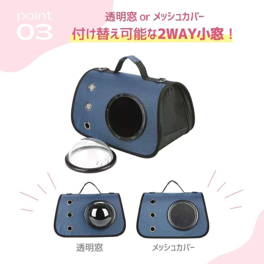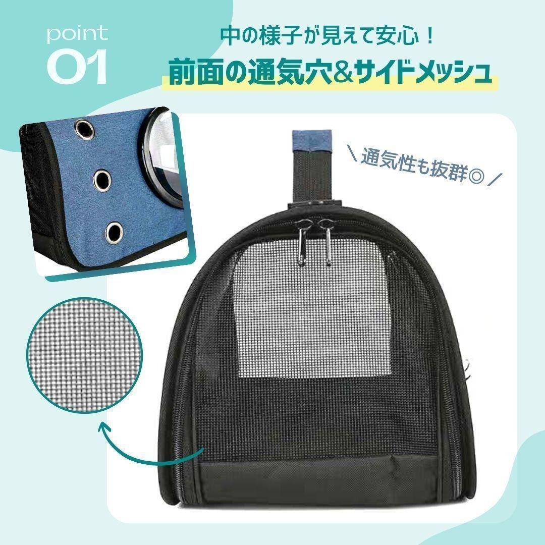 両面にメッシュデザインが施され、正面の透明カップセルは空気をうまく循環させ、猫、犬に通気性の良い空間を造り出します。