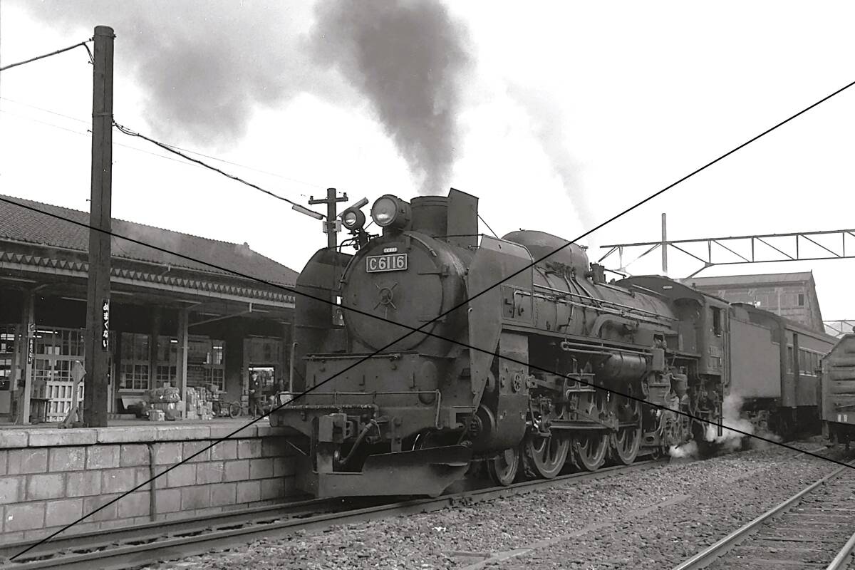 C61-16〔青〕小デフ付+PC-東北本線=昭和40年代のSLモノクロネガ35mm1コマ#6/沼宮内駅/526客レ/S43.3.23/著作権譲渡証明書=有り
