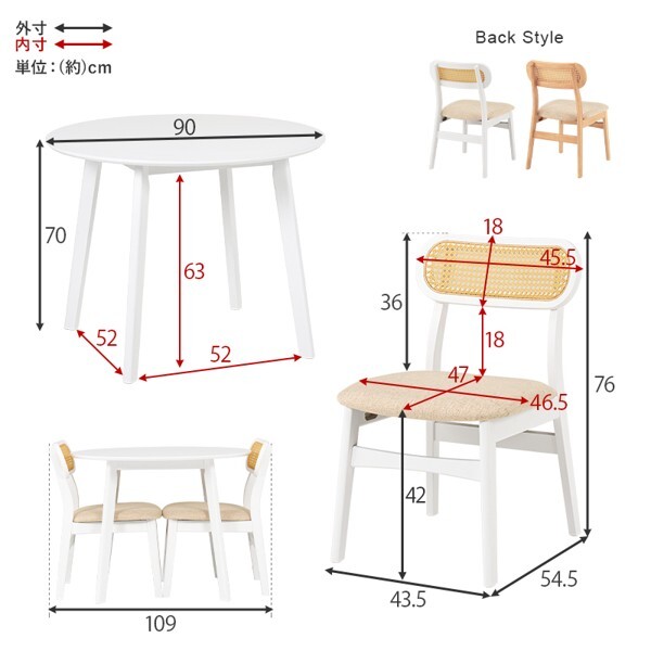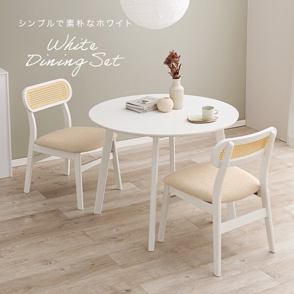 ※現在ご覧の商品ページはホワイトのご購入ページとなります。 ヤフオクの仕様上単一ページに複数バリエーションを掲載することができませんので、他バリエーションが希望の場合は別ページでご購入お願い致します。 ラタン調背もたれのチェアと丸テーブルが可愛いダイニング3点セット。 コンパクトで場所を取らず置きやすいサイズ感。 配達業者を指定いただくことはできません。 北海道/沖縄/離島のお届けに別途中継料金が発生します。 ※別途送料が発生する場合は後ほどご連絡させていただきます。 当店は正規店です。 タイミングによっては在庫切れの場合があります。