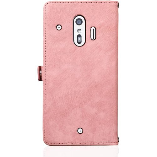 らくらくスマートフォン F-01L 財布付きスマホケー お洒落 無地 マグネットスナップ スタンド機能 ピンク 649