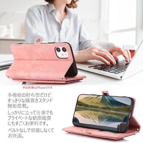 ファスナーポケット搭載、カードポケットが9枚差し入れます。大きなフリーポケットx1枚!
