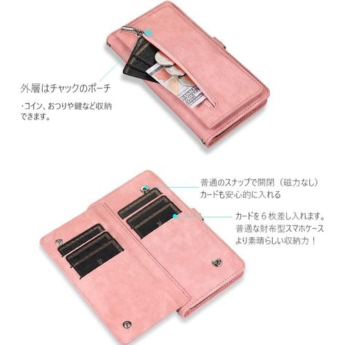 ②便利なファスナーポケット;お釣り・コインなど入るファスナーポケットが付いております。③大容量・カードポケット9箇所;キャッシュレスの生活に必要になるカード収納機能、さらにカードを9枚入れ、これのケースだけで収納できる。④大きなサイドポケット搭載;サイドにフリーポケットも開けてお札、券や紙幣などお好きに入れます。これ1つ持てばちょっとした買い物はバックを持たずに出かけらるようになります。