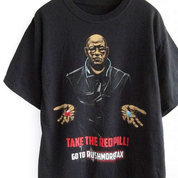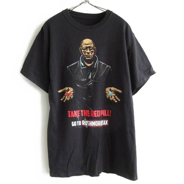 美品 マトリックス モーフィアス 半袖Tシャツ 黒 L程度 ブラック パロディ ムービーT 丸首 丸胴 希少 レア D146-01-0008ZVW