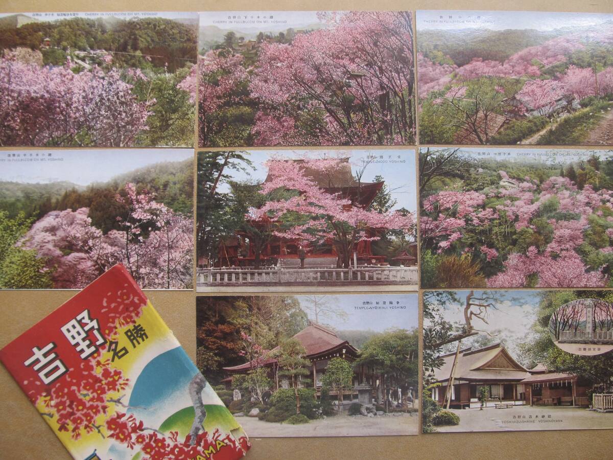 奈良【吉野名勝】絵葉書 8枚,袋 *桜*