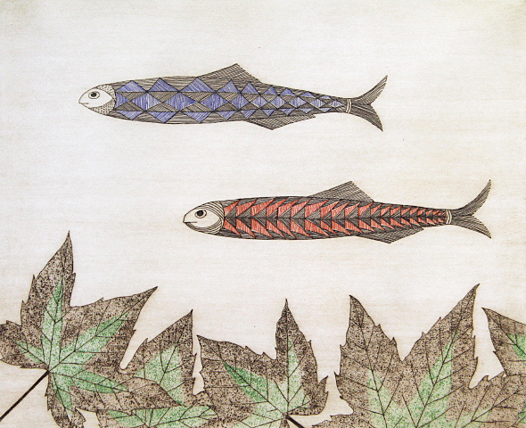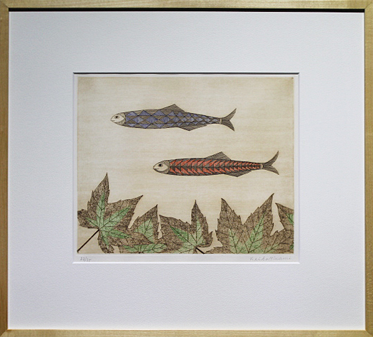 ■★南桂子 【2匹の魚】 1970年 エッチング 直筆サイン エディション有り