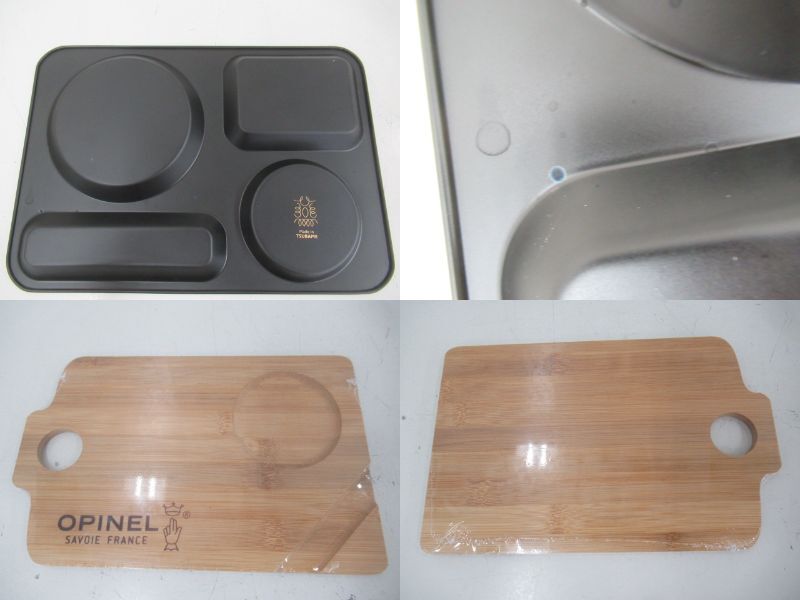 【セット内容】クチーナボックス(グレー)・カフェトレー(シルバー、ブラック)・オピネル×BE-PAL:カッティングボード・DOD×Mart:大判カッティングボード
