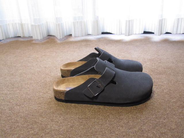 未使用 ビルケンシュトック BIRKENSTOCK BOSTON ボストン スエード SOFT FOOTBED サンダル ドイツ製 ダークグレー 40/26cm/L9/M7