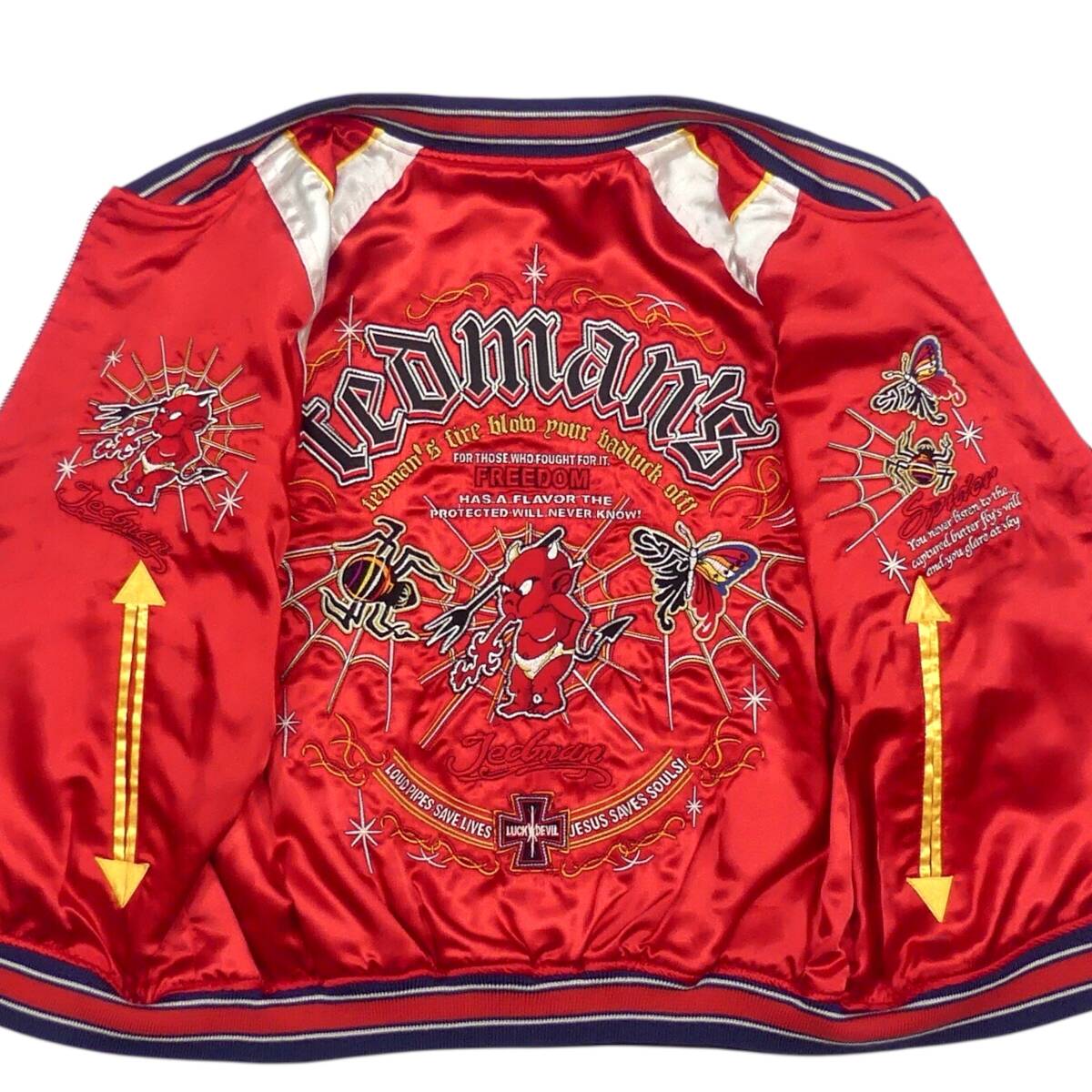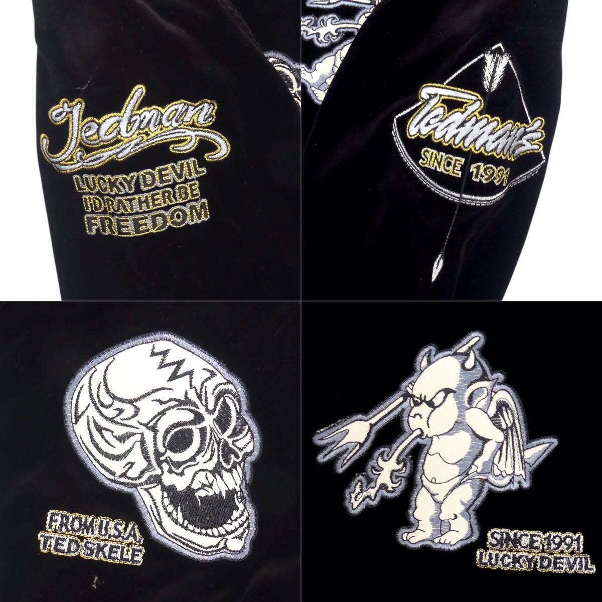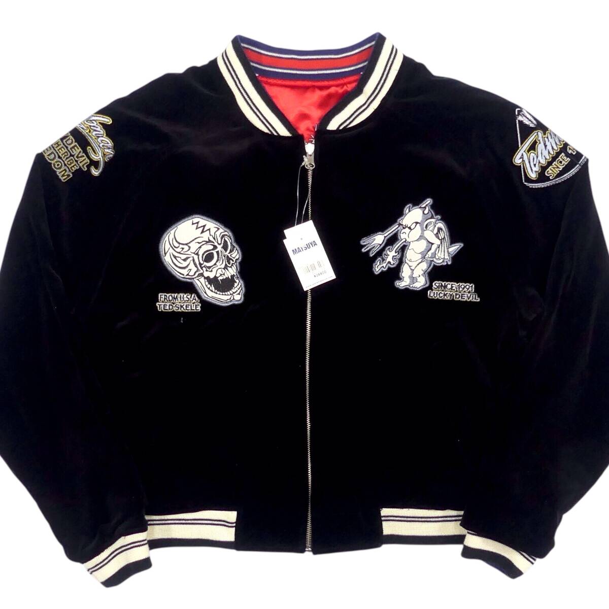 即決★Tedman★未使用 メンズ L スカジャン テッドマン L ベロア サテン 40 リバーシブル 黒 赤 刺繍 ブラック ブルゾン ドクロ タグ付き