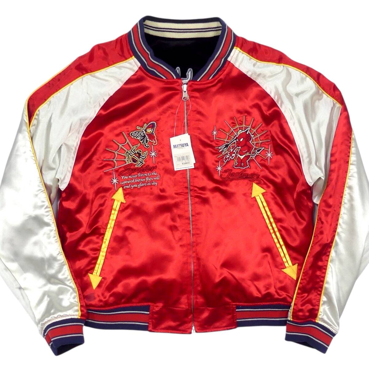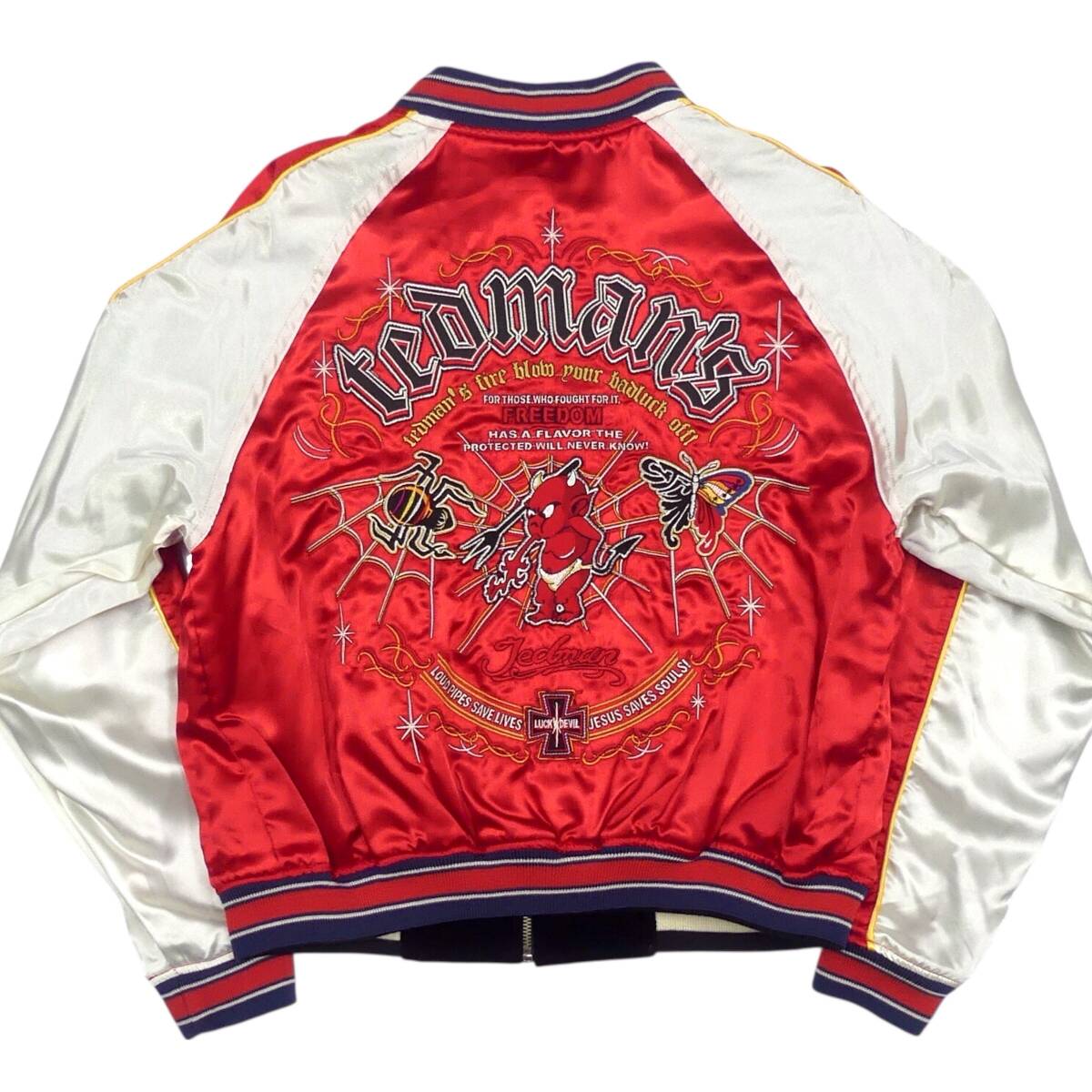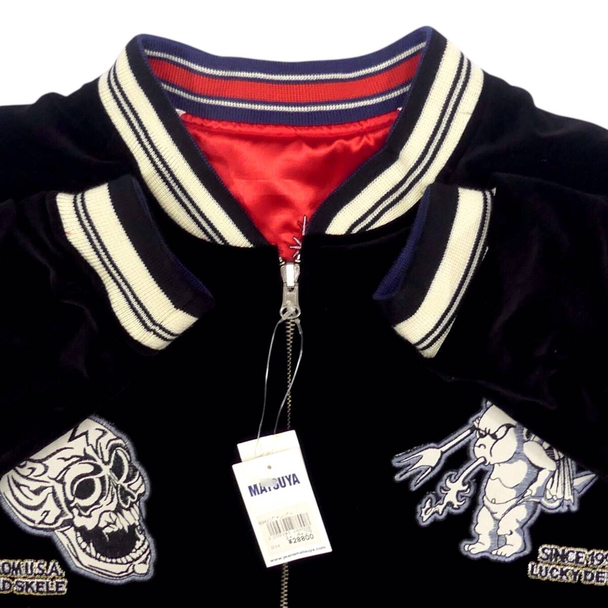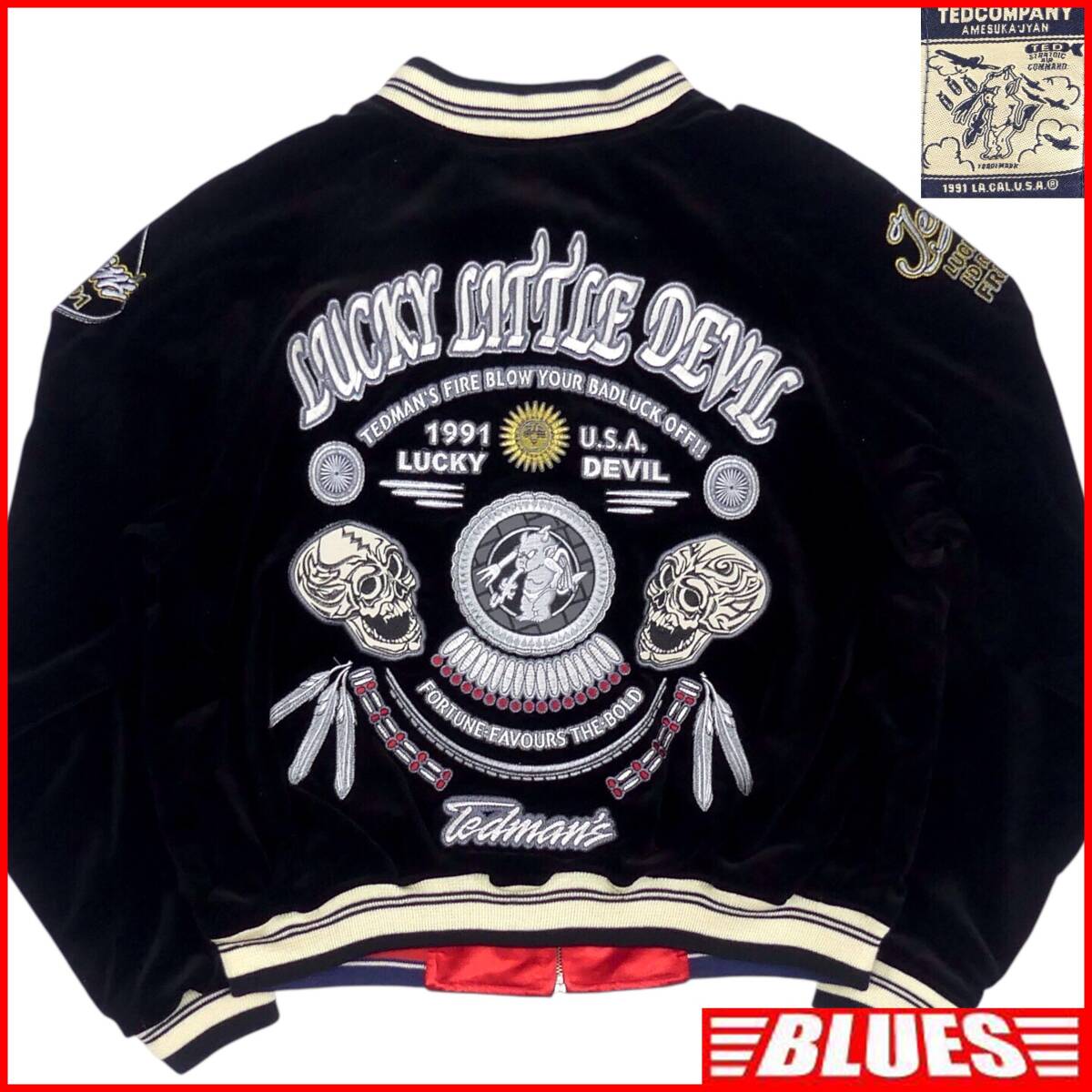 即決★Tedman★未使用 メンズ L スカジャン テッドマン L ベロア サテン 40 リバーシブル 黒 赤 刺繍 ブラック ブルゾン ドクロ タグ付き